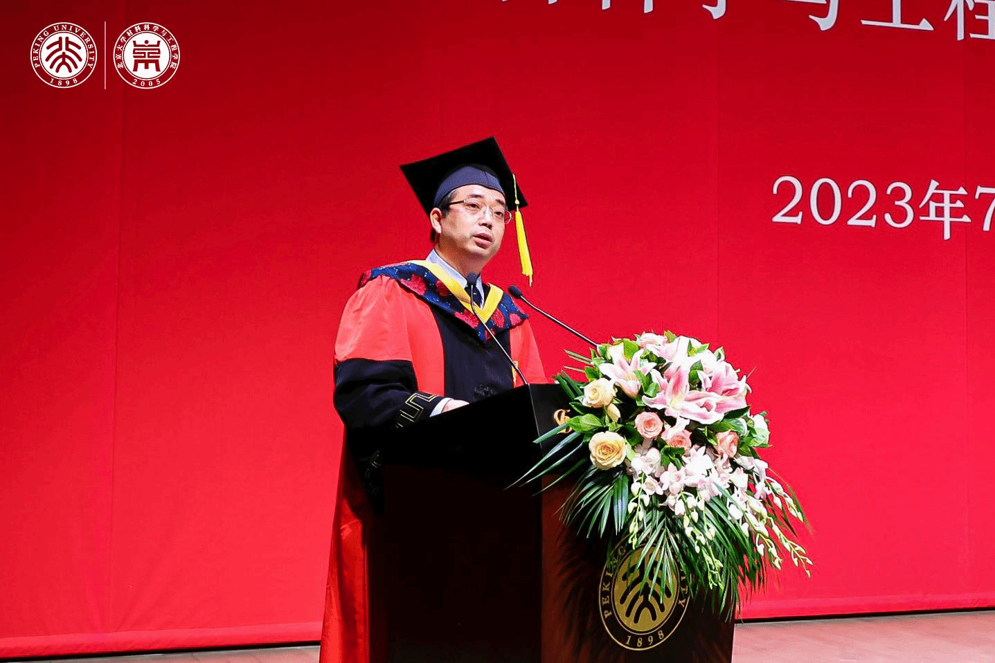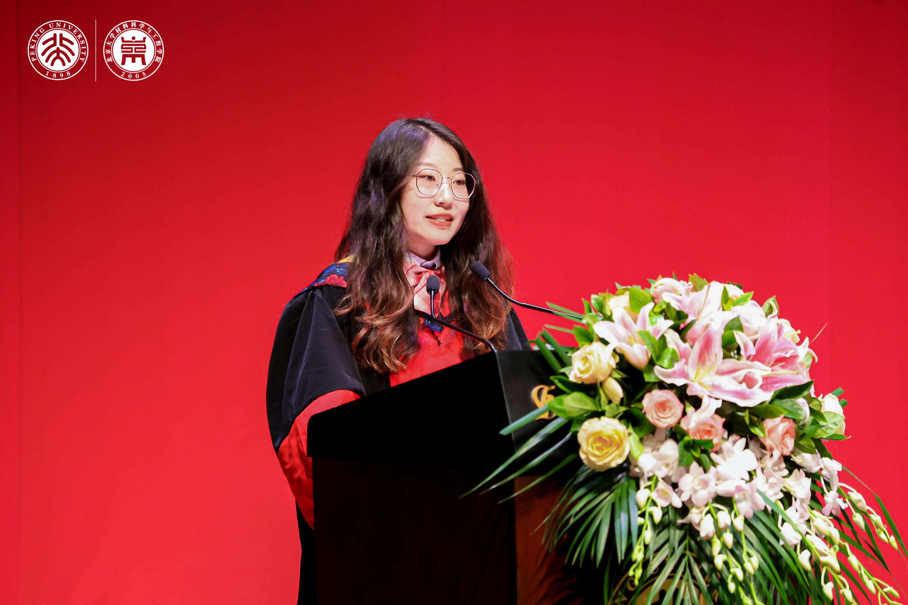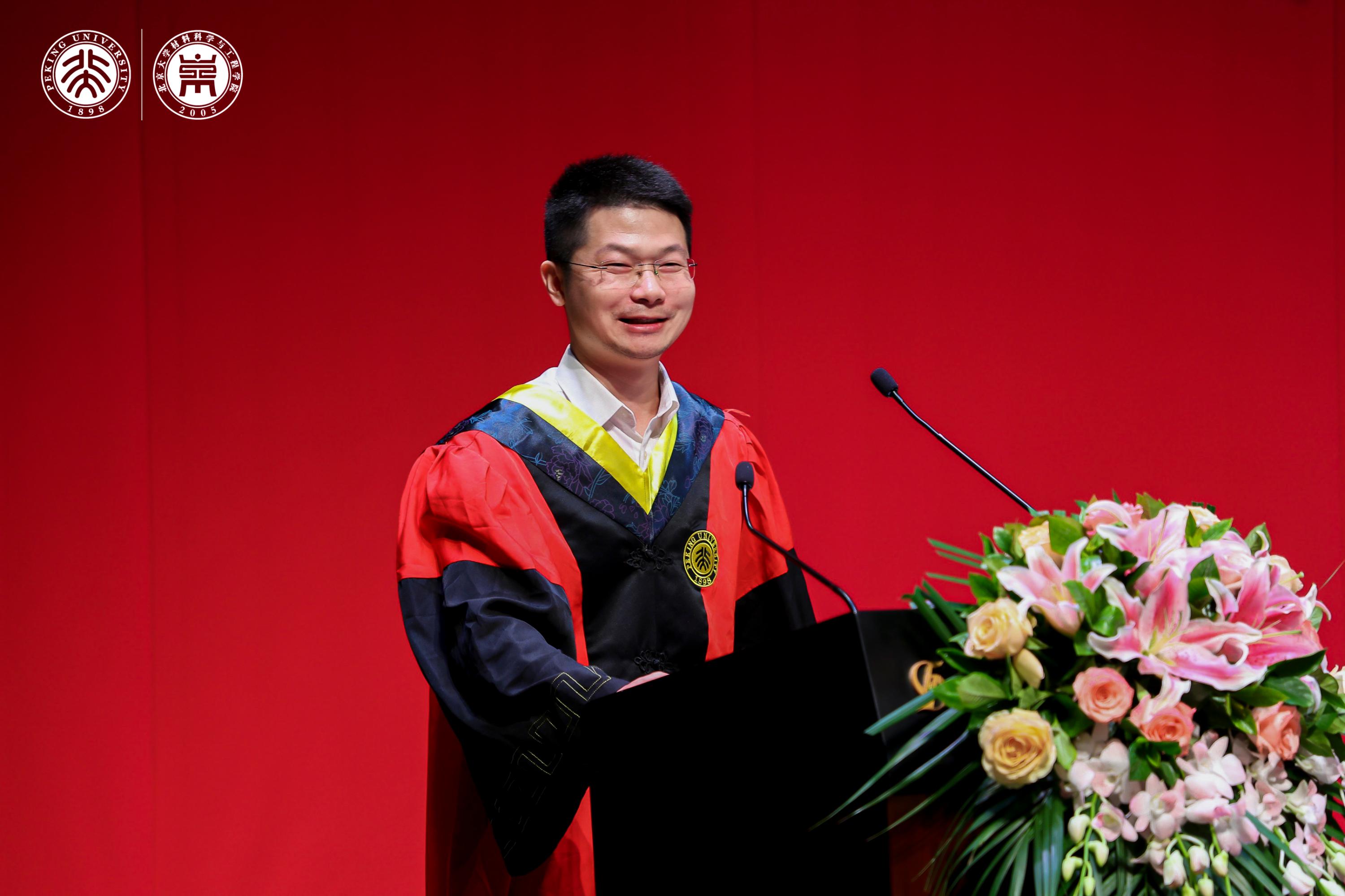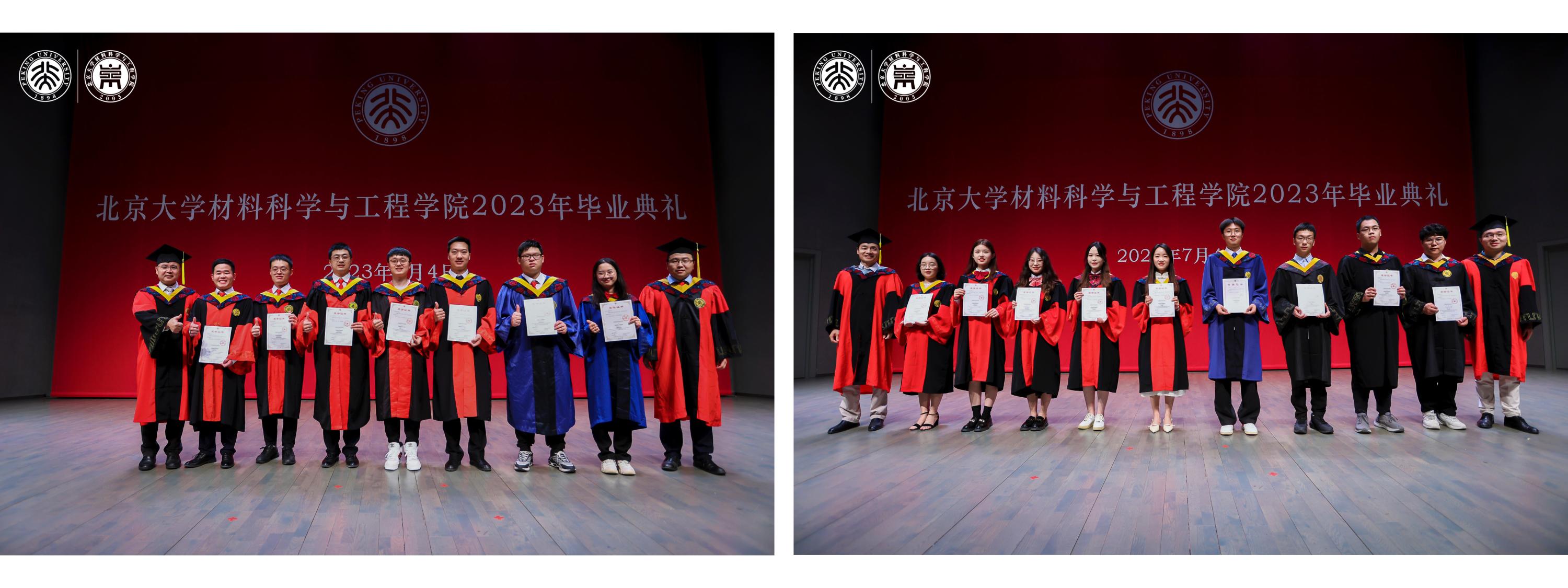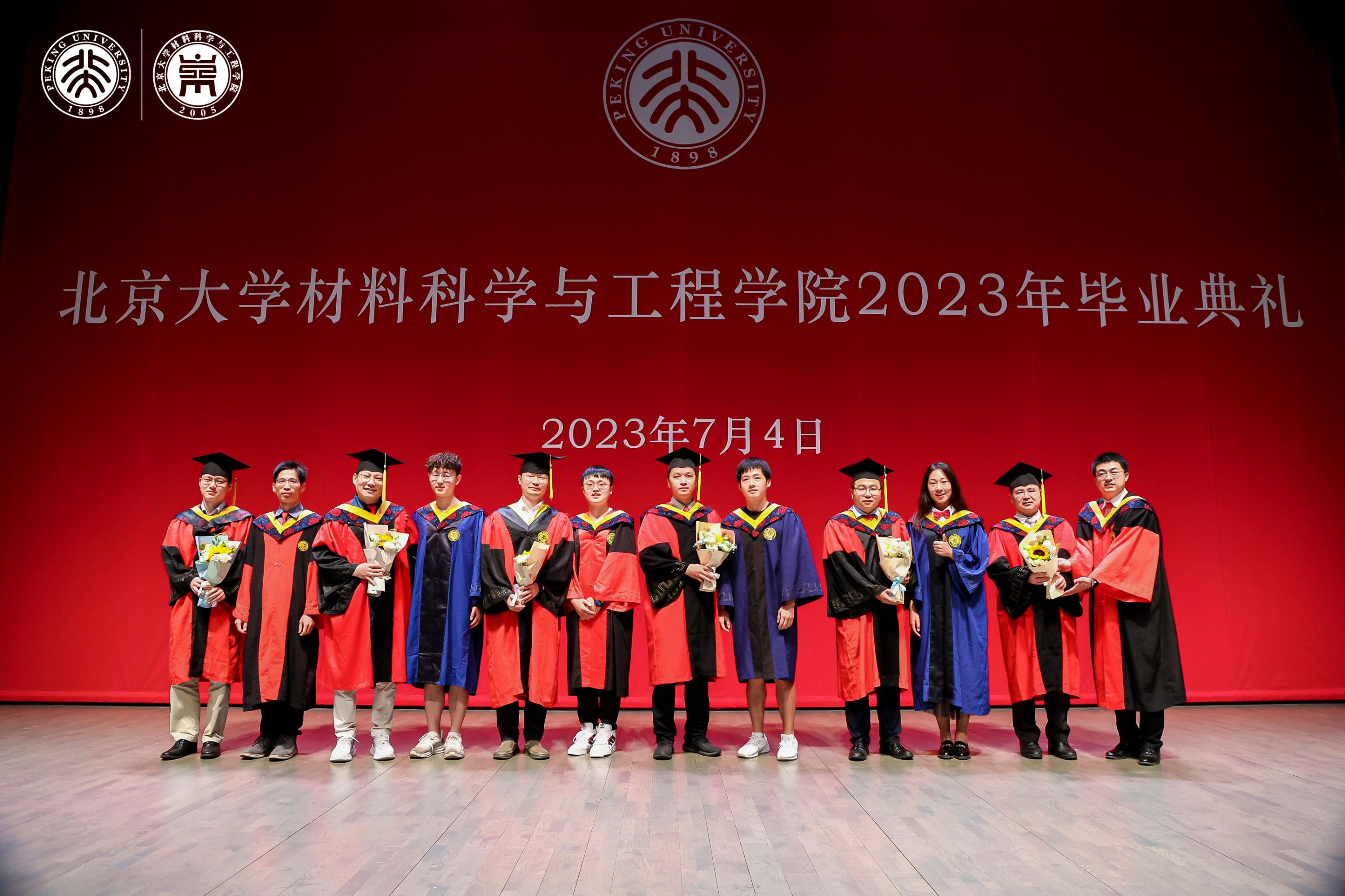 典礼上,张锦院士,新材料学院孟鸿教授、肖荫果副教授,材料学院曹安源教授、雷霆研究员等教师为获得“北京市2023年优秀毕业生”、“北京大学2023年优秀毕业生”、“2023年北京大学优秀学位论文”、“材料科学与工程学院第二届学术十杰”荣誉称号的同学和指导老师们颁奖。
