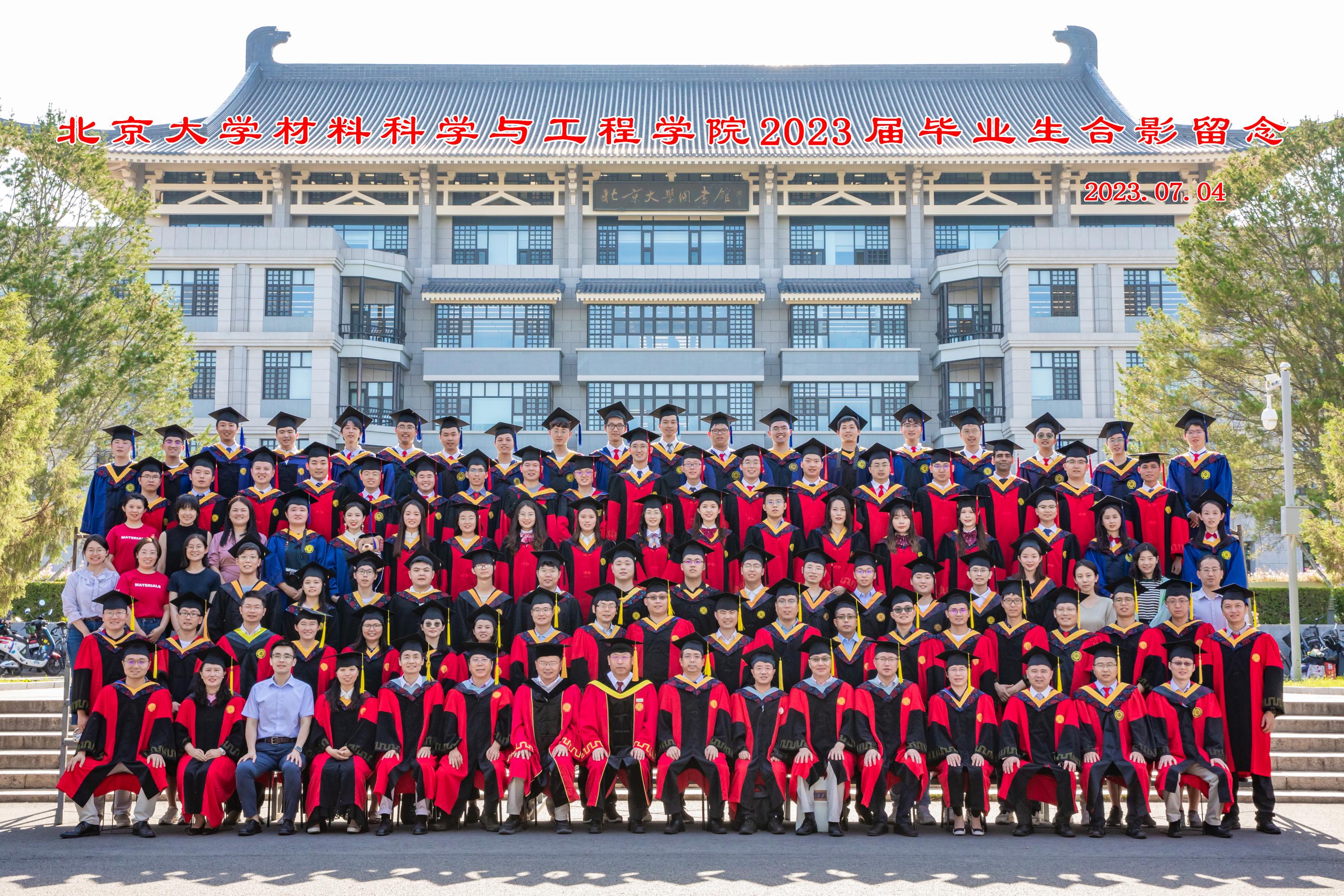 2023年7月4日下午,北京大学材料科学与工程学院2023年毕业典礼在百周年纪念讲堂李莹厅隆重举行。北京大学党委常委、副校长、深圳研究生院院长张锦院士,北京大学材料科学与工程学院院长、党委书记、深圳研究生院新材料学院院长邹如强教授,北京大学材料专业2012届毕业生、杰出青年基金获得者、华中科技大学光电学院费鹏教授,材料科学与工程学院分学位委员会主席夏定国教授以及学院全体教职员工出席典礼。今年,材料科学与工程学院(以下简称材料学院)及深圳研究生院新材料学院共有63名研究生和21名本科生顺利毕业,他们在家长的陪伴下来到现场,共同参与和见证这个富有纪念意义的时刻。典礼由材料科学与工程学院副院长周欢萍教授主持。