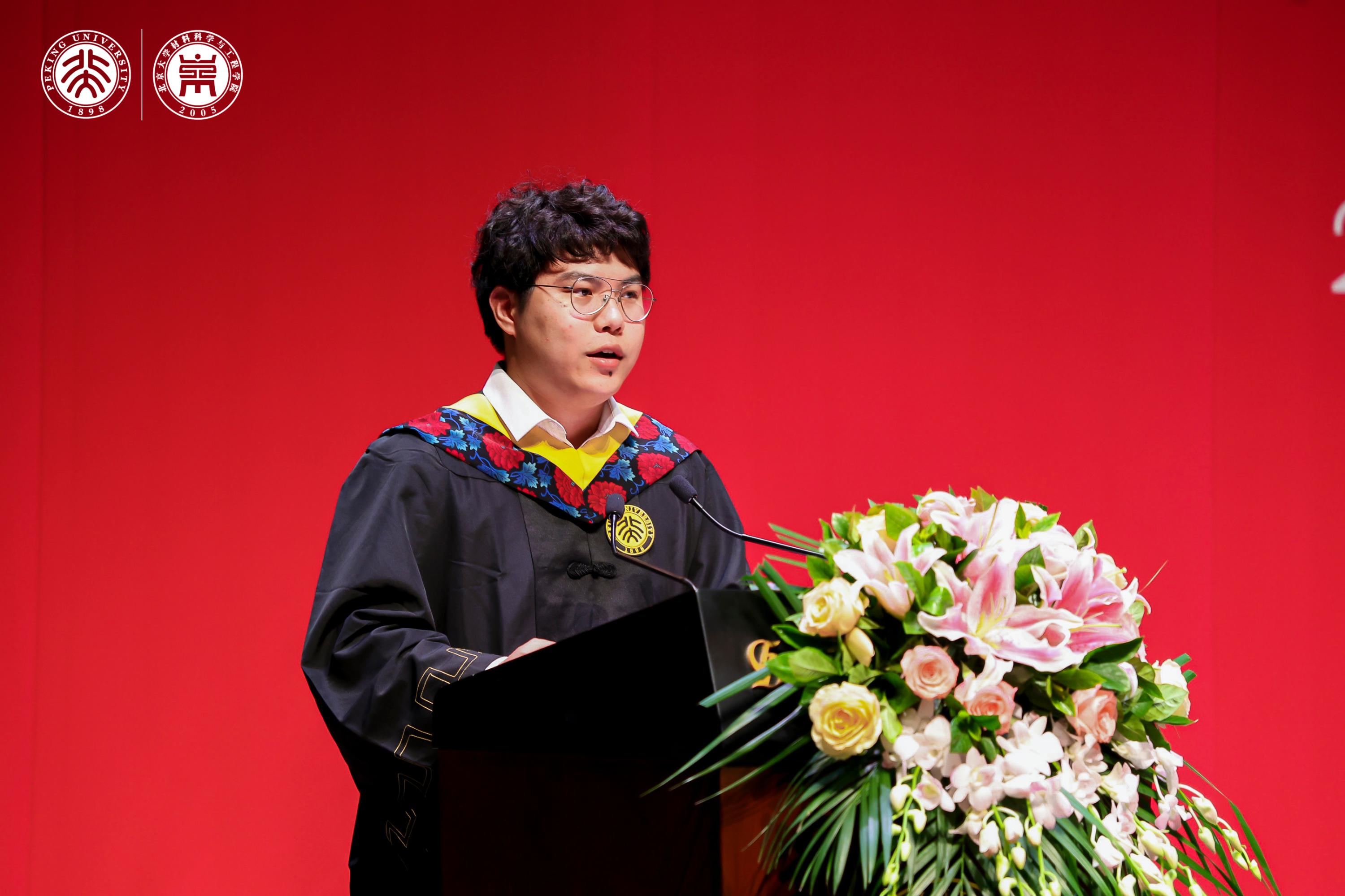 2019级材料专业本科毕业生李济泽的父亲李仰景先生作为家长代表发言。他发自肺腑地感谢北大和材料学院以及各位老师对孩子的悉心栽培,并勉励毕业生要常怀感恩之心、不负重托,肩负起中华民族复兴的伟大使命,不辜负学校、不辜负老师、不辜负父母、更不辜负自己。