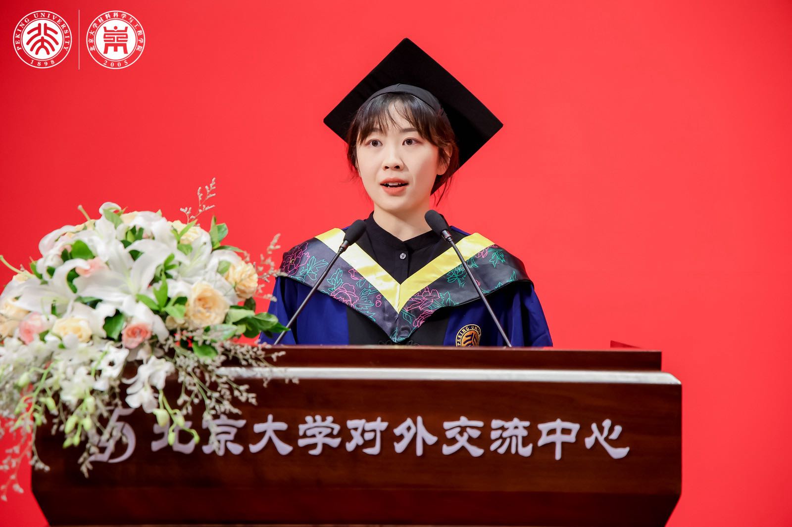 典礼正式开始前,一首《光阴的故事》将大家的思绪带回了过往的青葱岁月;毕业纪念视频承载了各位材料学子于燕园中共度的几轮寒暑;北京大学风雷街舞社带来的街舞表演《Hot Summer》点燃了告别与启程的盛夏;毕业生通过深情的朗诵——《燕园流年,忆材子时光》,表达了对母校和师友最真挚的留恋与祝福。