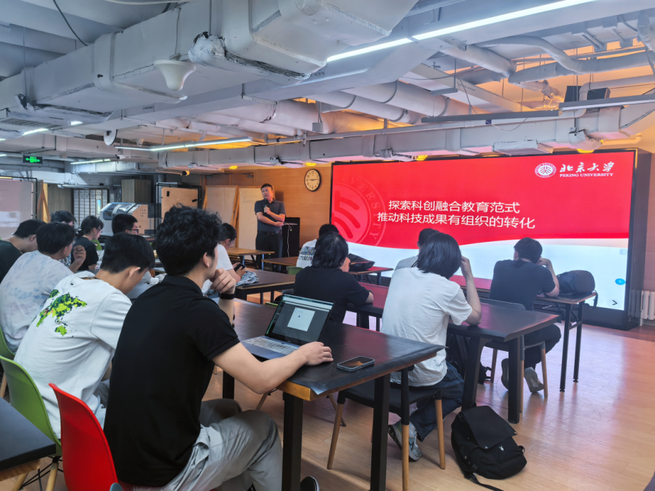 6月30日上午,课程在北京大学极客实验室开班。课程负责人林立介绍项目建设初衷、课程设计理念与教学安排。