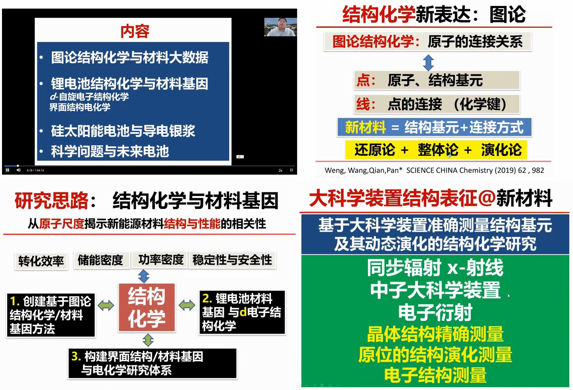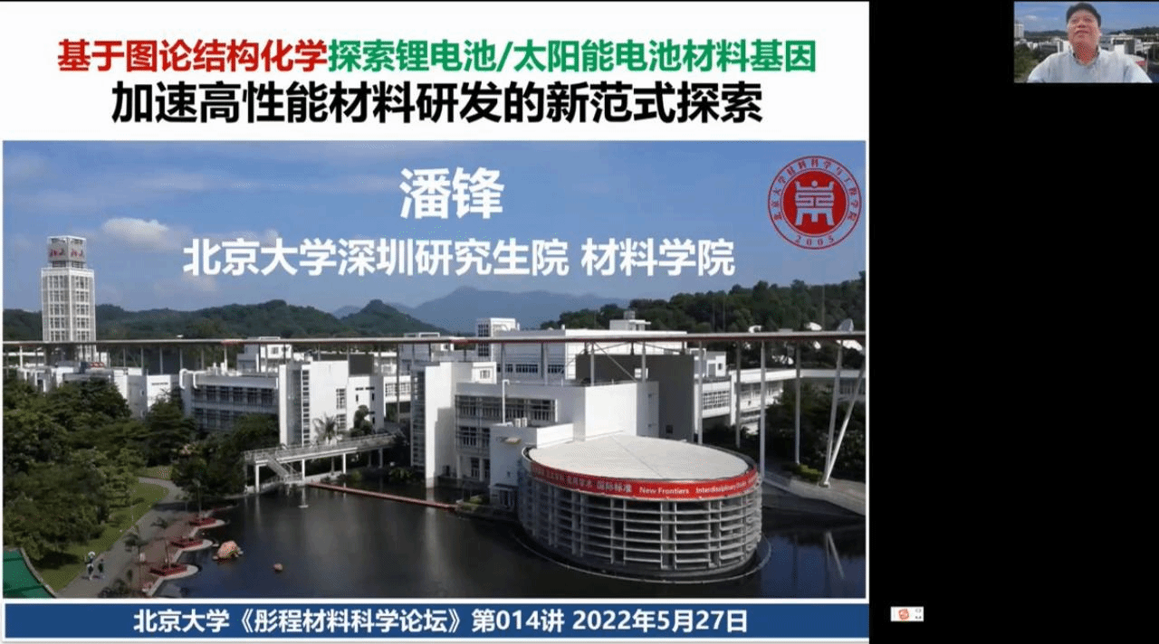 2022年5月27日,北京大学《彤程材料科学论坛》(Red Avenue Materials Science Forum)第十四讲在线上顺利完成。北京大学讲席教授、深圳研究生院副院长、材料科学与工程学院副院长潘锋带来题为“基于图论的结构化学探索锂电池材料基因-加速高性能材料研发的新范式”的报告。材料学院教授侯仰龙主持并致欢迎辞,报告吸引了科研云、蔻享学术等直播平台累计4.4万人次在线参与观看。