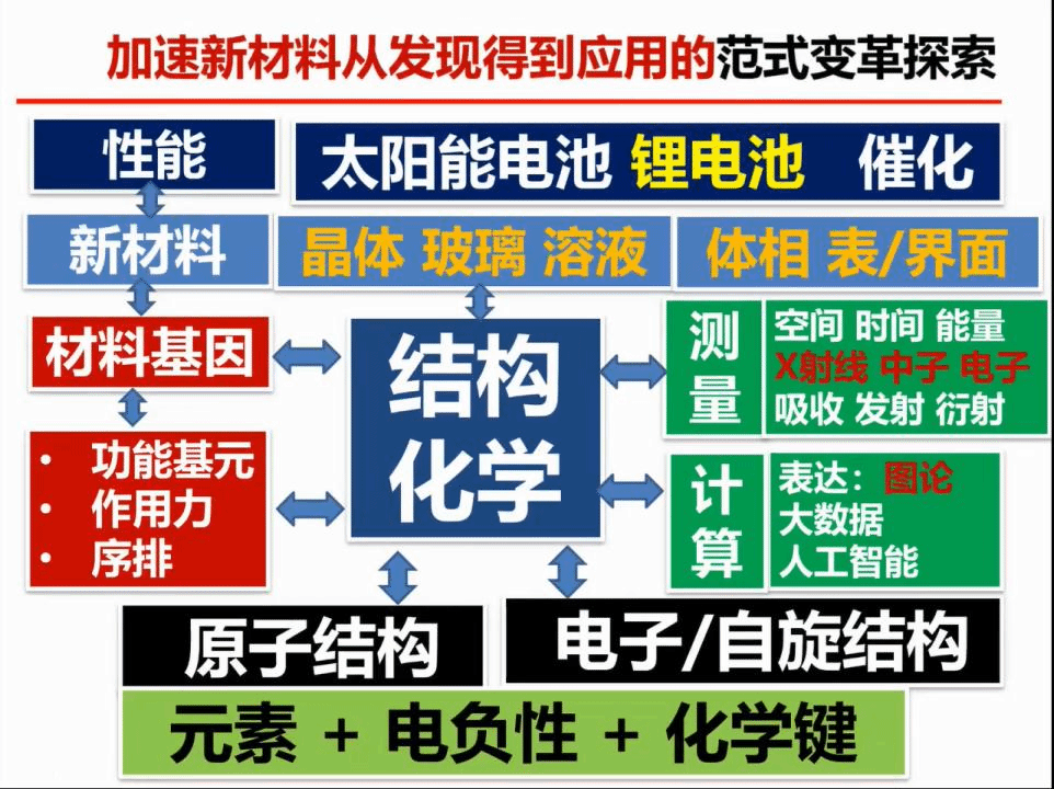 基于图论结构化学研究方法,还可以探索“什么是材料基因?及如何开展材料基因的研究?”等问题,从而从原子尺度揭示新能源材料结构与性能的相关性,由此应用于筛选合适的锂电池材料。这些材料大数据也得益于大科学装置能够准确测量结构基元及其动态演化,诸如利用同步辐射X-射线和中子等大科学装置,对锂离子的位置和传输途径进行监测,以及原位测量合成过程中的结构演化等。