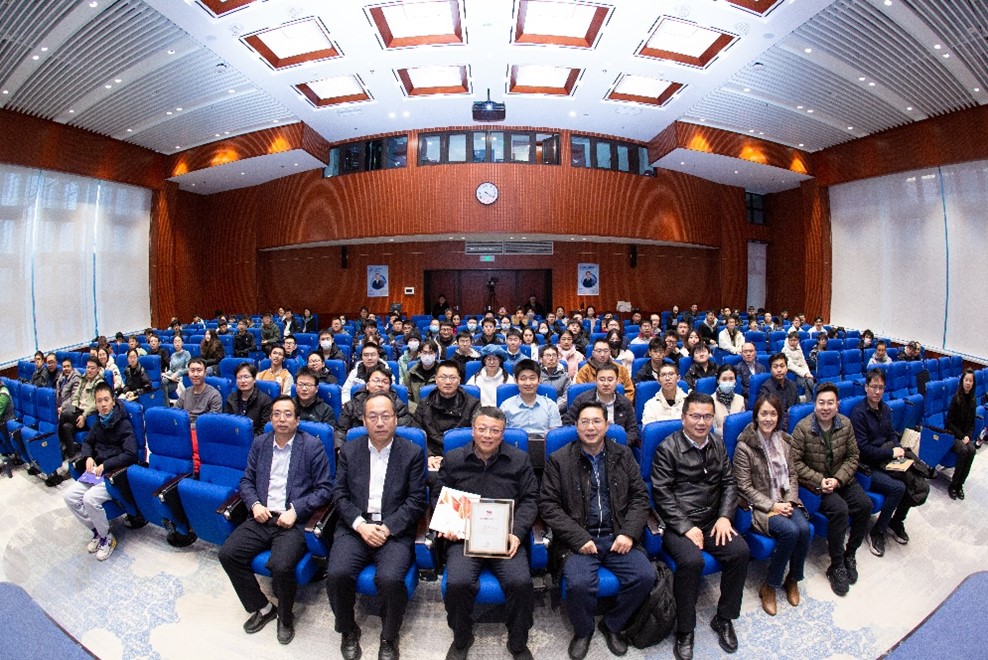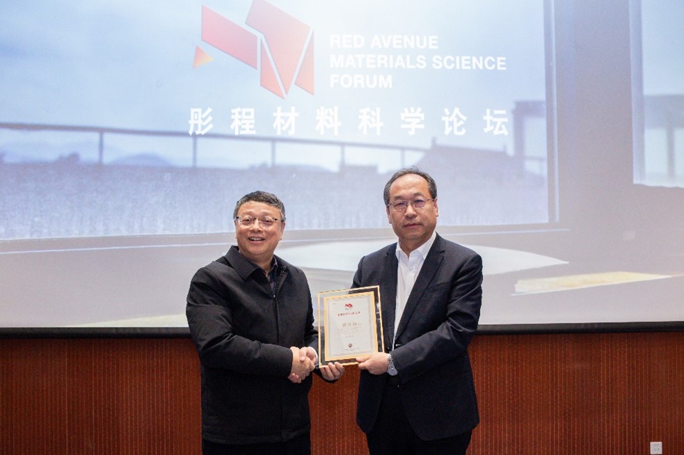 报告结束,张锦院士为郭烈锦院士赠予《彤程材料科学论坛》授课证书并合影留念。