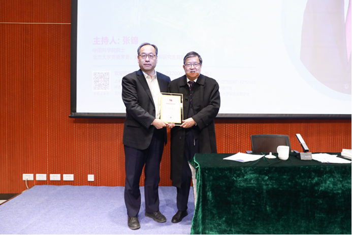 报告结束后,张锦院士为龙永图先生赠予《彤程材料科学论坛》授课证书并合影留念。
