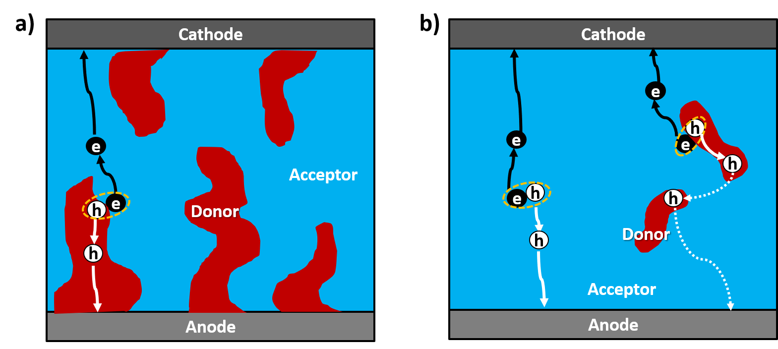 Operation mechanismsof a)BHJ andb) QHJ devices.