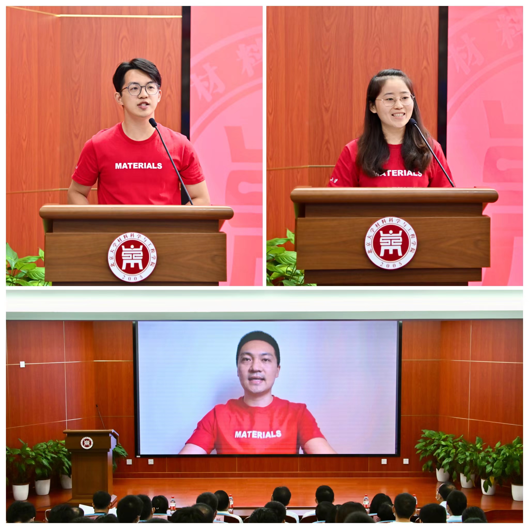 There are 31 research master students and 22 engineering PhD students joining the School of Material Science this year. Among these students, there are 12 bachelor students who have chosen their major as material science, officially devoted themselves to this discipline. Yanrun Chen and Jingyi Wang, the research master students of 2022, and Di Wu, the engineering doctorate student, gave a speech on behalf of freshmen. Yanrun Chen shared his experience with material science starting with the preparation of special steel material used on Bird’s Nest Stadium. At the beginning of this semester, he had become a doctoral student, and he hoped that he can transform from “someone who gained knowledge” to “someone who utilized knowledge”, to fulfill their best dream through efforts and to make real benefits to all people. Jingyi Wang shared the same insight about material science with Yanru Chen. She said that the research and study experience during her master’s degree study gave her a better understanding on what “down-to-earth” means, not only in work, but also in attitudes. Preparation decides future, “Materialers” have significant responsibilities to take. She hoped to study further from various experts in more fields, to learn the preparation industry needed, to be the link of research and engineering, and to practically solve some industrial problems. Di Wu, as a first-year doctoral student recommended by China Rare Earth Group, from the perspective of a practioner of Rare Earth industry, shared the achievements China material and manufacturing industry had made and the difficulties faced in the industrialized process. He expressed the hope to continue studying in this ultimate hall of rare earth research, to keep promoting innovation of engineering technologies as his goal, to strive to follow the steps of his predecessors, to keep the original intention and mission in mind, and to attain the dream at PKU.