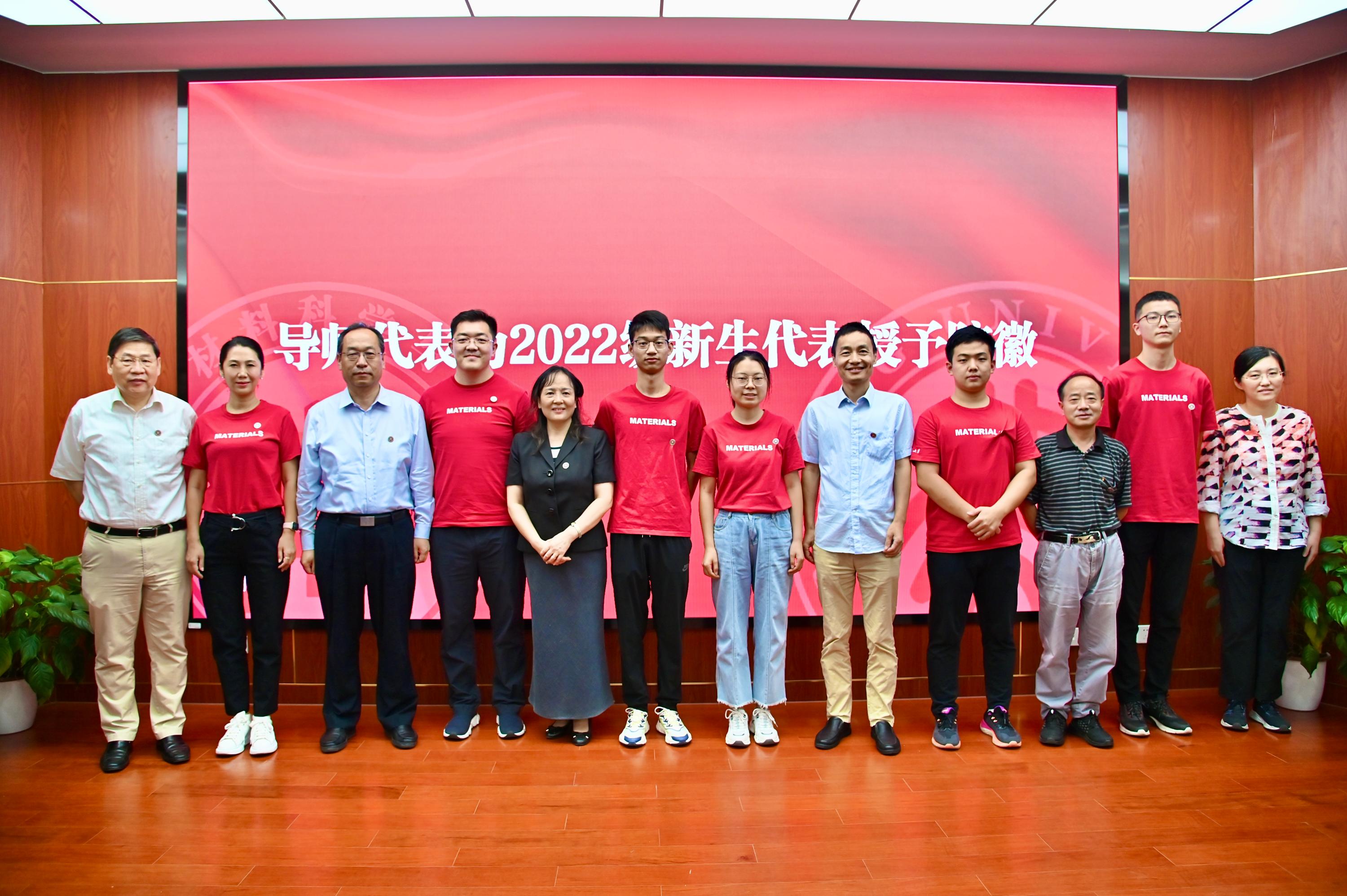 The dean of the School of Material Science and Engineering, Professor Jin Zhang, director of Material Science and Engineering Academic Committee, Professor Yue Zhang, the winner of Beijing Excellent Teacher 2022, Professor Qian Wang, the winner of Moral Education Award of Peking University 2022, Professor Xiaowei Zhan, the winner of Cai Yuanpei aesthetic education Scholarship of Peking University, Professor Anyuan Cao, the winner of NG Teng Fong/ Sino Scholarship for Outstanding Youth, Professor Yuefu Cao all presented the emblems to the new student delegates together. The faculty members and students put on the emblem which represented the honor and mission of the School of Material Science and Engineering with the university song Yan Yuan Qing.