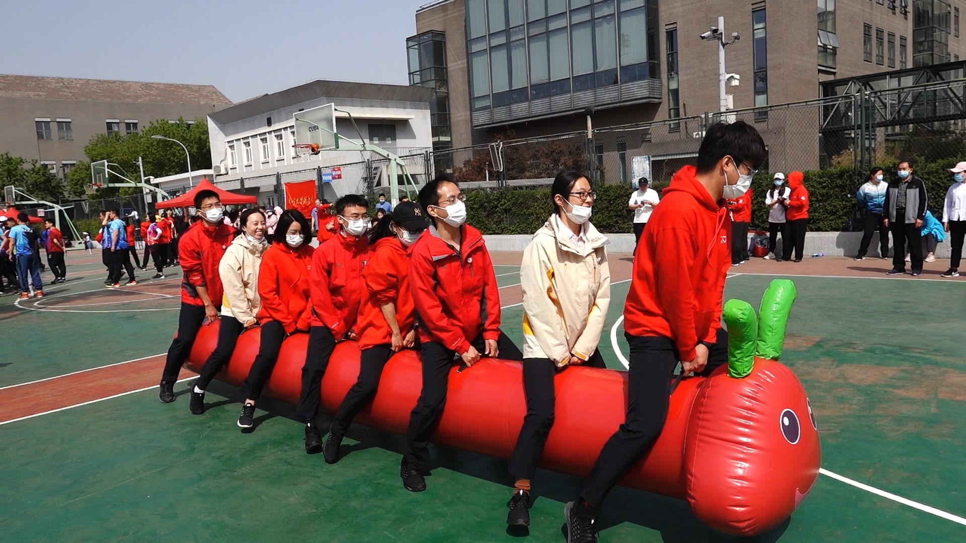 Sun Qiming, Liu Jincheng, Lv Jia, Yuan Miaomiao, etc., a total of 8 teachers participated in the mixed teachers’ “caterpillar race”.