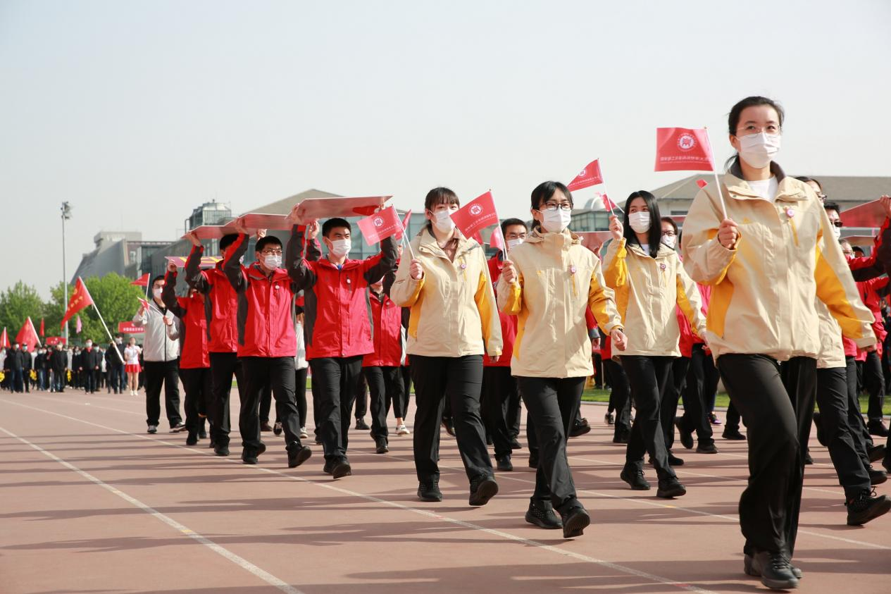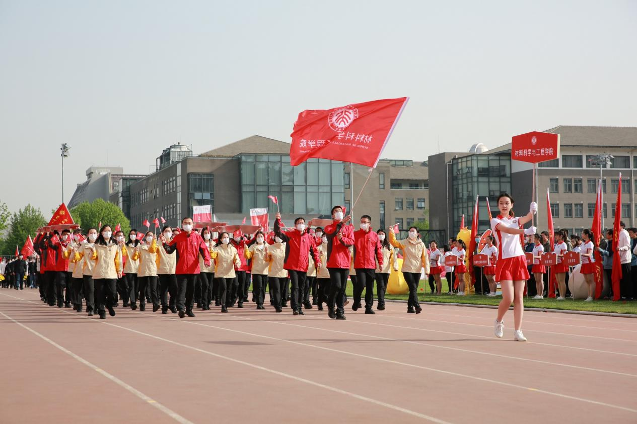 On the morning of April 23, the sports meeting kicked off with the exciting song “The march of the athletes”. Leading by Zou Ruqiang, the Secretary of the CPC School of Materials Science and Engineering (SMSE) Committee, Zhou Huanping, the Deputy Dean ofSMSE, Guo Shaojun and Zhang Jing, the Deputy Secretaries of the CPC SMSE Committee, and Lei Ting, the Assistant Dean of SMSE, teachers and students of SMSE held the flag of SMSE, smiled, chanted the slogans andmarched in orderly with accompaniment. With the principle of “making materials that bring real benefits to human development”, they displayed the vitality and endeavor of sportsmanship and showed the unique spirit of SMSE.