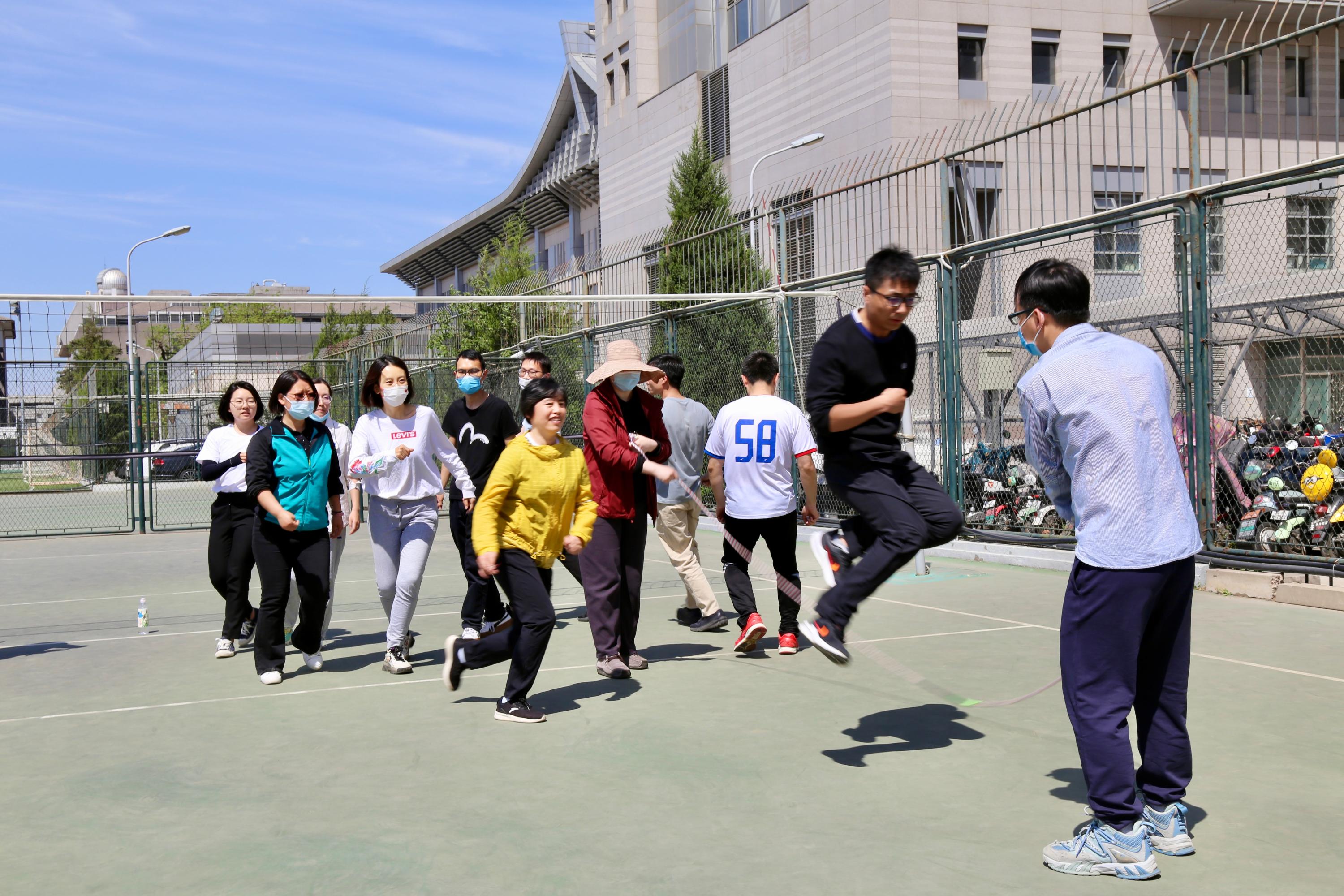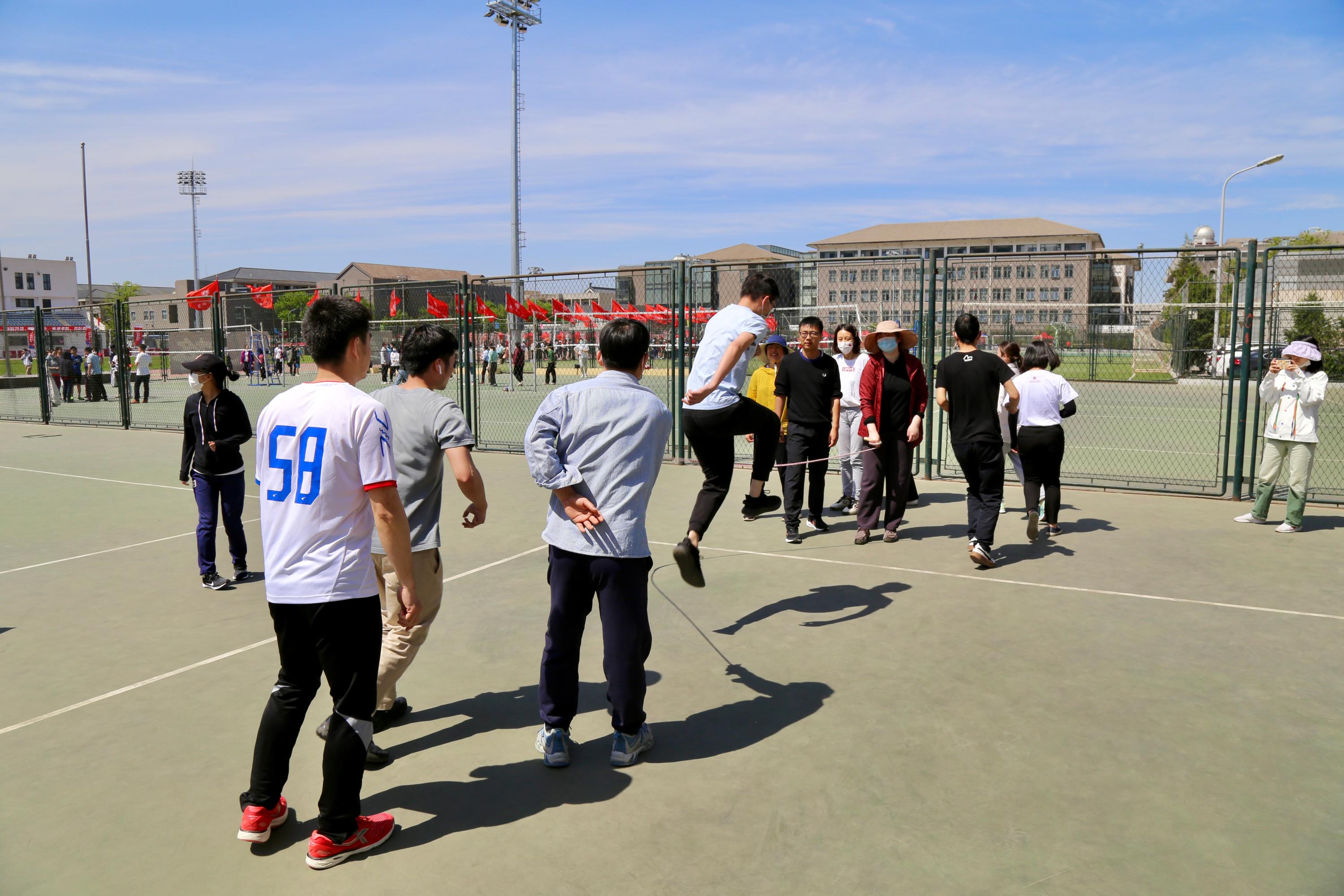 Liu Lili, Zhang Lanying, Zhang Yanfeng, Jiao Kun, etc., a total of 12 teachers participated in the mixed teachers’ rope skipping.