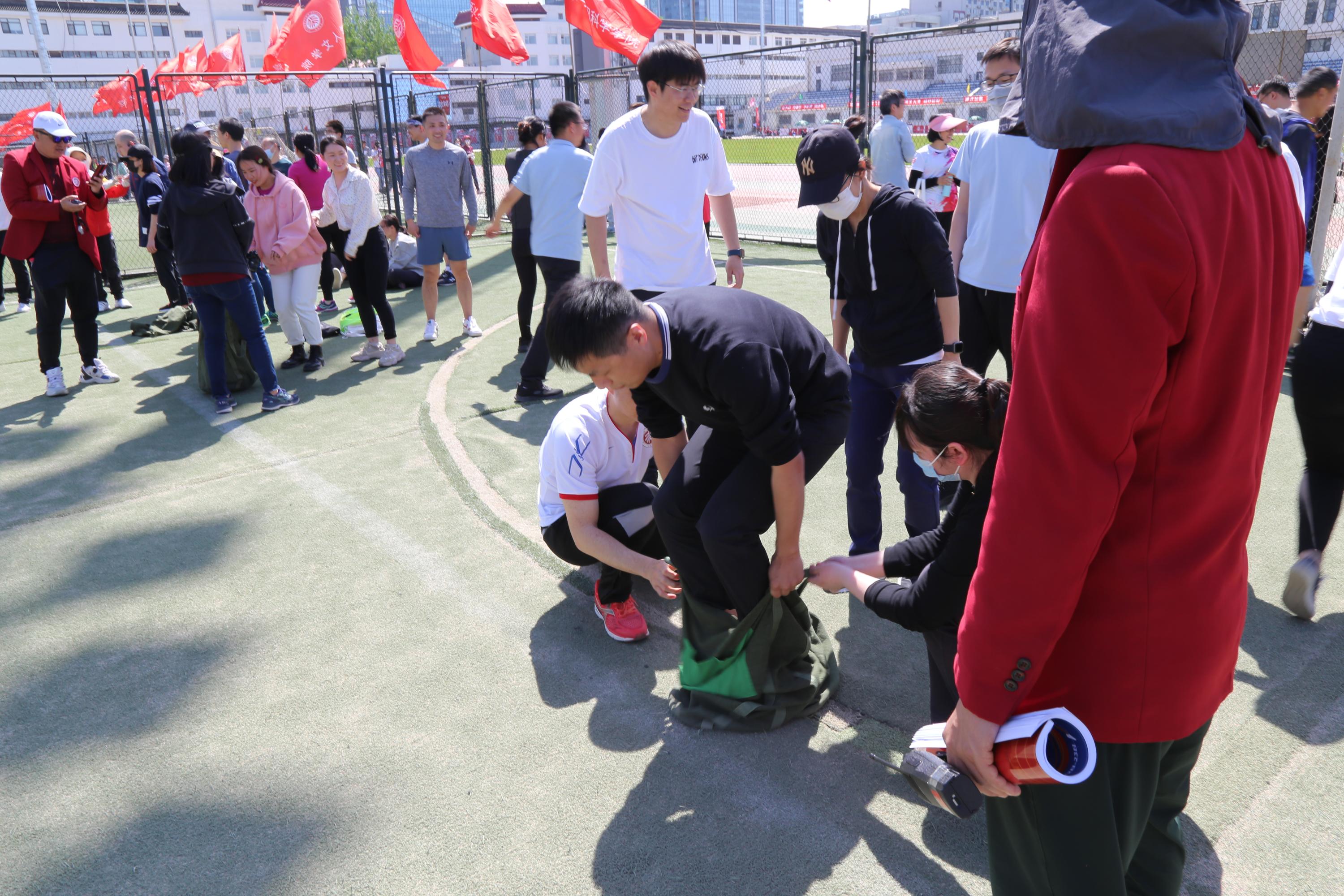 Mo Fanyang, Wang Guanyi, Zhao Xiaoxu, Li Weina, etc., a total of 6 teachers participated in the mixed teachers’ sack race relay.