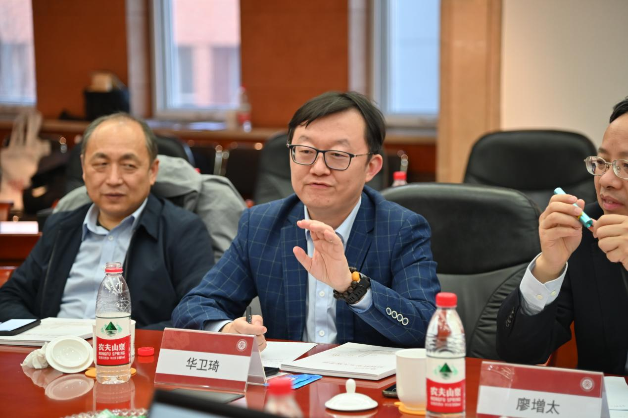 Kou Guangwu, the President of Wanhua Chemical Group, Hua Weiqi, the Executive Vice President, Li Yuan, the Vice President of Wanhua’s Central Research Institute, Zhang Hongke, the Deputy Chief Engineer of the Central Research Institute, Hu Bingbo, the Head of the Science and Technology Management Department and other staff of Wanhua Chemical Group came to visit PKU. Academician Zhang Jin, the Dean of School of Materials Science and Engineering (SMSE) and the Dean of Shenzhen Graduate, PKU, Yin Xuesong, the Director of Office of the new Changping Campus Management Committee, Ma Yuguo, the Secretary of the CPC School of Chemistry and Molecular Engineering Committee, Zou Ruqiang, the Secretary of the CPC School of Materials Science and Engineering Committee and the Vice Dean of SMSE, Wei Yu, the Director of Office of Emerging Engineering and Development, Zhang Jing, the Deputy Secretary of the CPC School of Council Materials Science and Engineering Committee, Wang Fei, the Deputy Secretary of the CPC School of Council Chemistry and Molecular Engineering Committee, Guo Shaojun, the Deputy Secretary of the CPC School of Council Materials Science and Engineering Committee and the Vice Director of Office of the new Changping Campus Management Committee, and other staff of PKU attended the meeting.