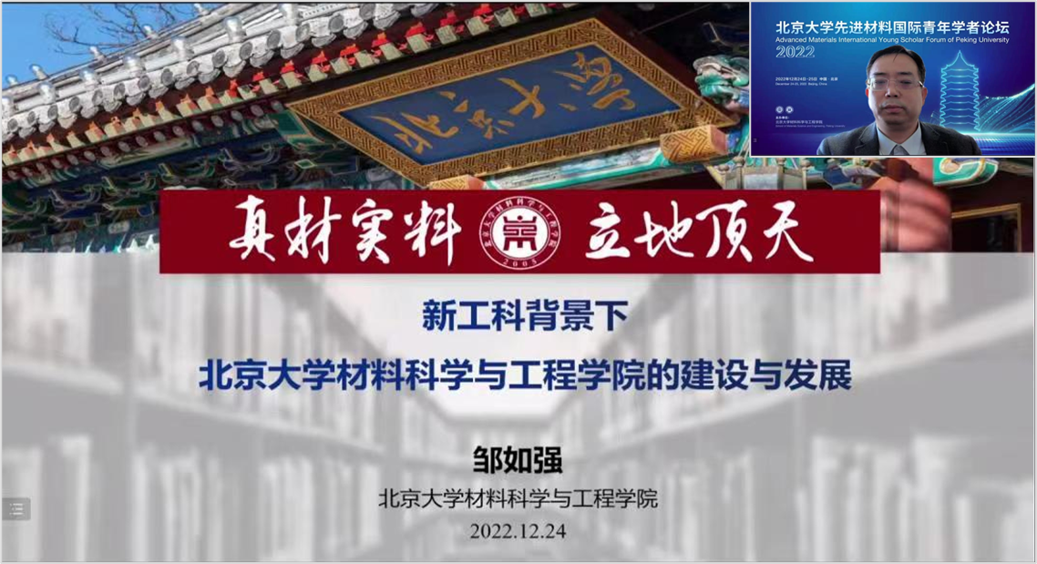 On December 24-25, the first Advanced Materials International Young Scholar Forum of Peking University was successfully held. Nearly 30 outstanding young scholars from Massachusetts Institute of Technology, Cambridge University, University of California, Berkeley, University of Toronto, Rice University and other schools around the world gathered through the internet to discuss the latest research trends of advanced materials. The forum was conducted online and broadcast globally through the network, attracting nearly 100000 audiences.