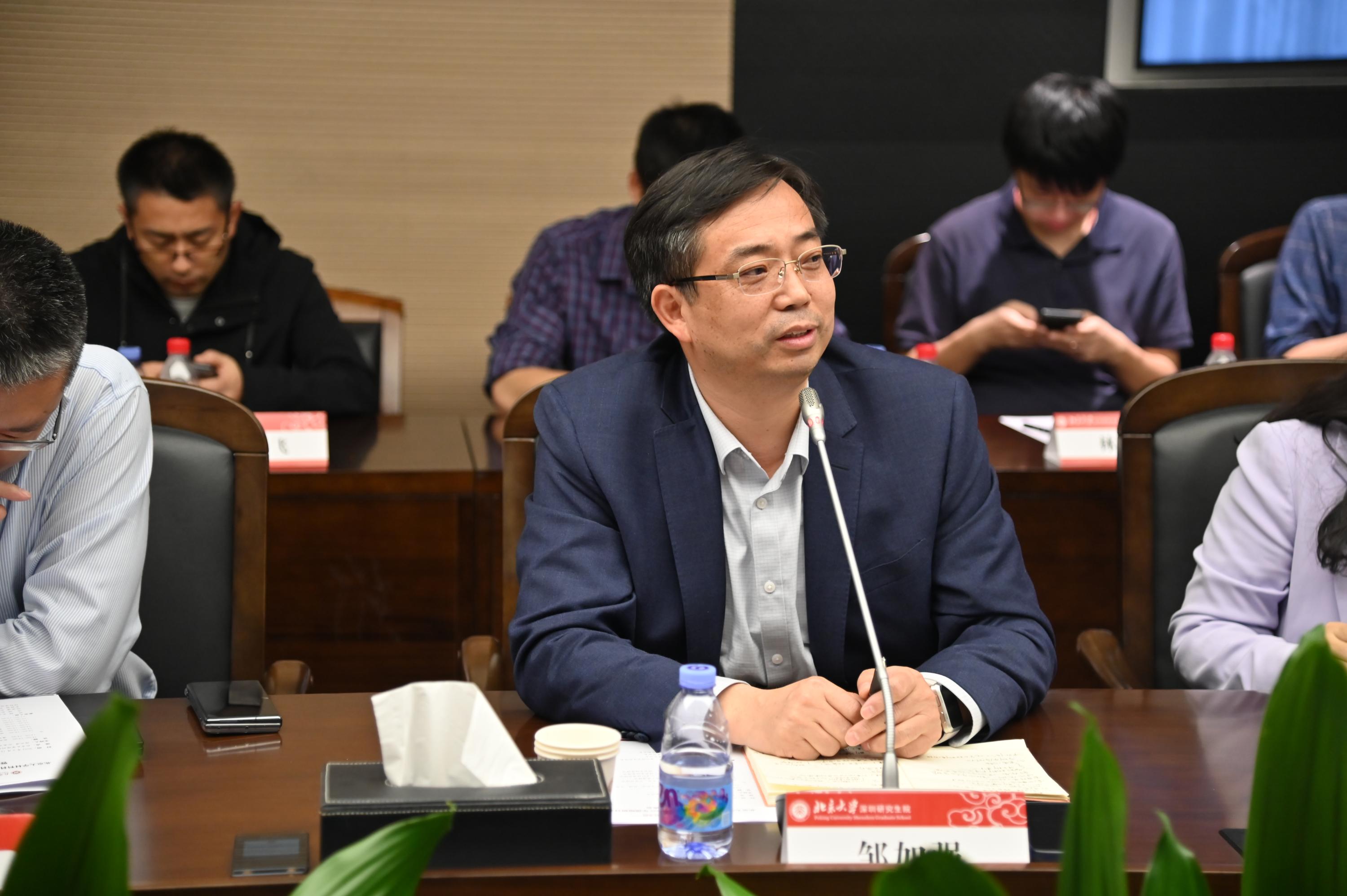 Zheng Jiaxin and Guo Shaojun reported on the north and south schools’party building and talent team construction. They proposed new ideas for integrating the north and south inthe new measures for the talent introduction of PKU. Both of them expressed their expectations for North-South linkage and cooperation. They hope to use the strong influence of PKU and the geographical advantage of the Greater Bay Area, Shenzhen, further adhere to follow the conduct of party building, innovate talent introduction and cultivation methods, strengthen talent cultivation mechanisms, and cultivate a group of outstanding technology leading talents for the Party and China.