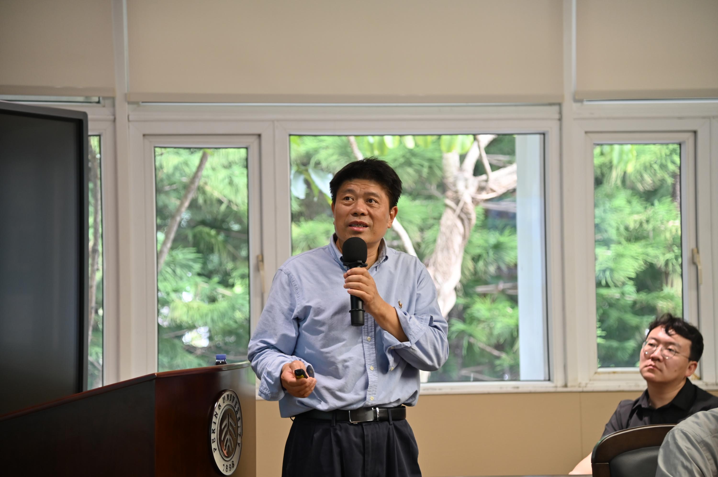 At the beginning of thesymposium, Zhang Jin, on behalf ofPKUSZ, welcomed the faculty and staff ofSMSEtoNorthYanyuan.Hepointed out that the integrationof North and South is a very important stepforPKUto promote the construction of new engineering disciplines.In addition,heexpressed hishopes that thissymposiumwill play an importantrole in promoting communication and cooperation between the two sidesandsaid thathe islookingforward to taking this opportunity to deeply explore and jointly create a new blueprint for the construction of new engineering disciplines from various aspects such as disciplinary layout, platform construction, and North-South joint mechanism.