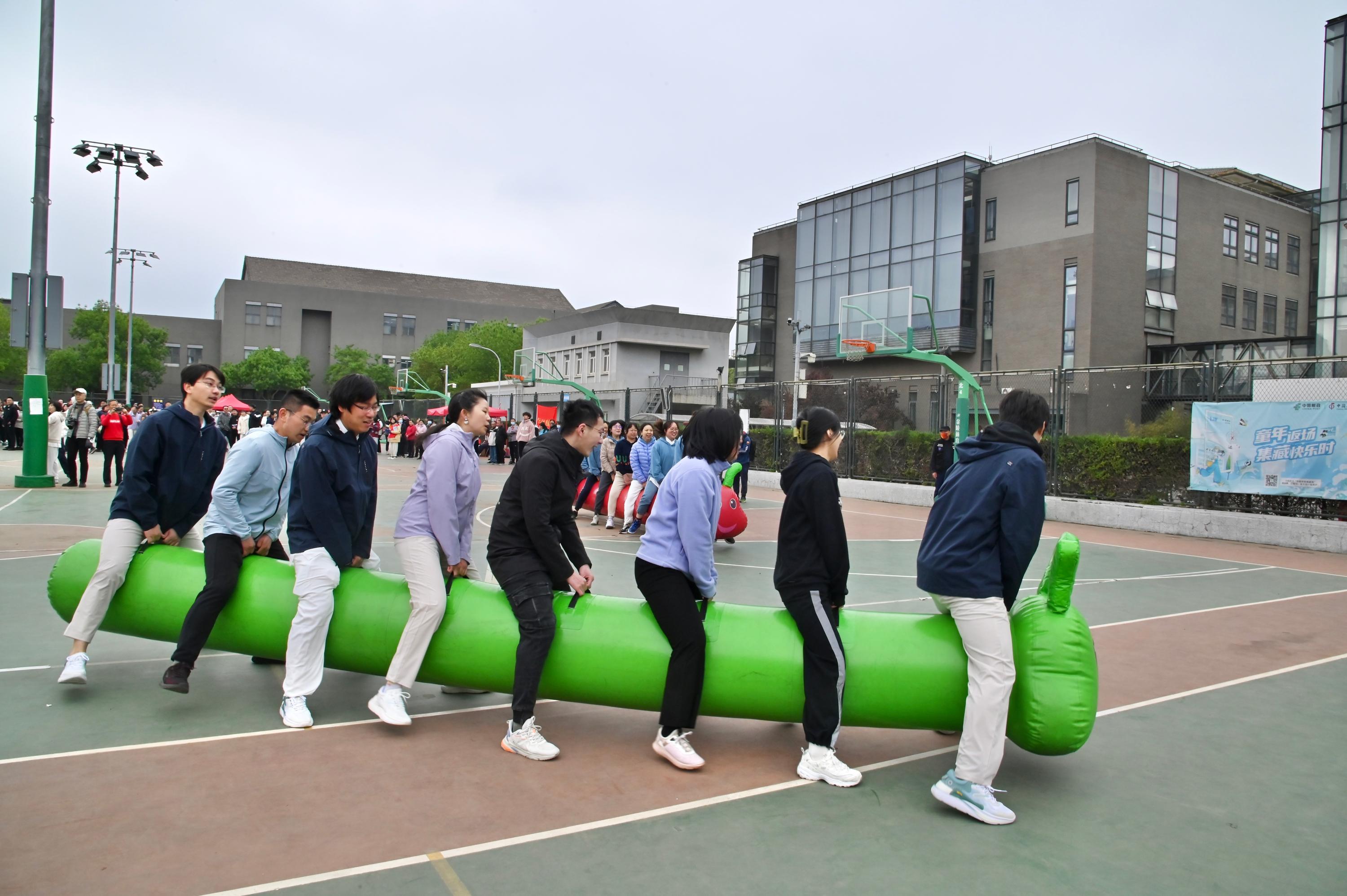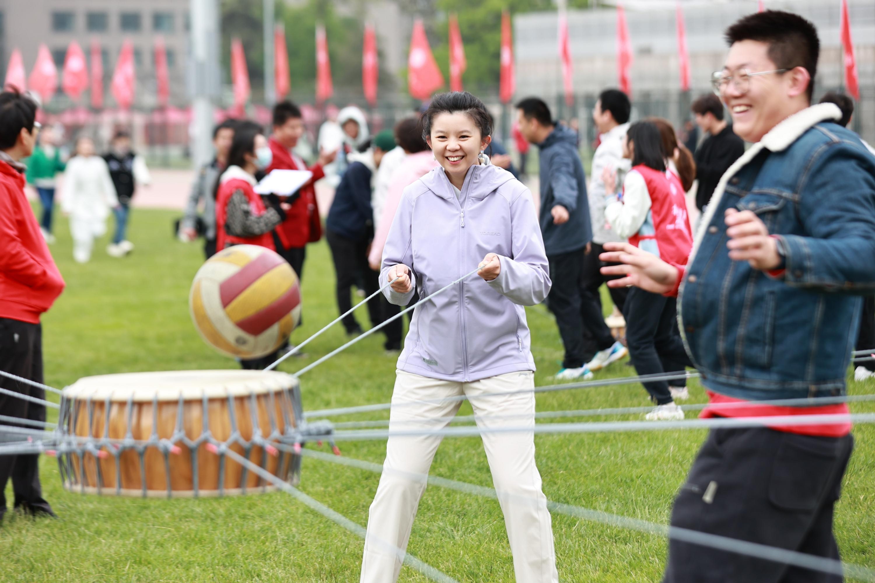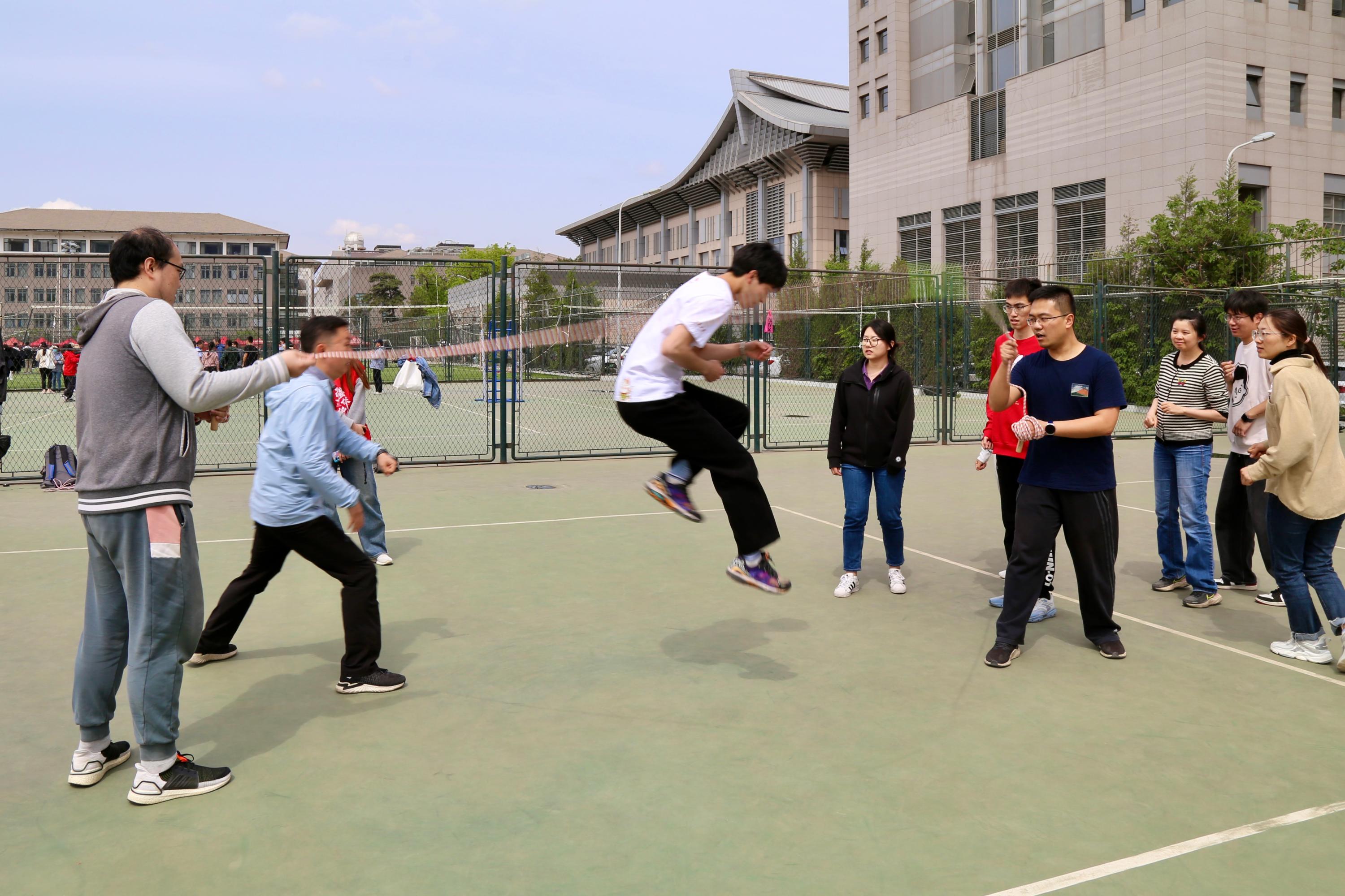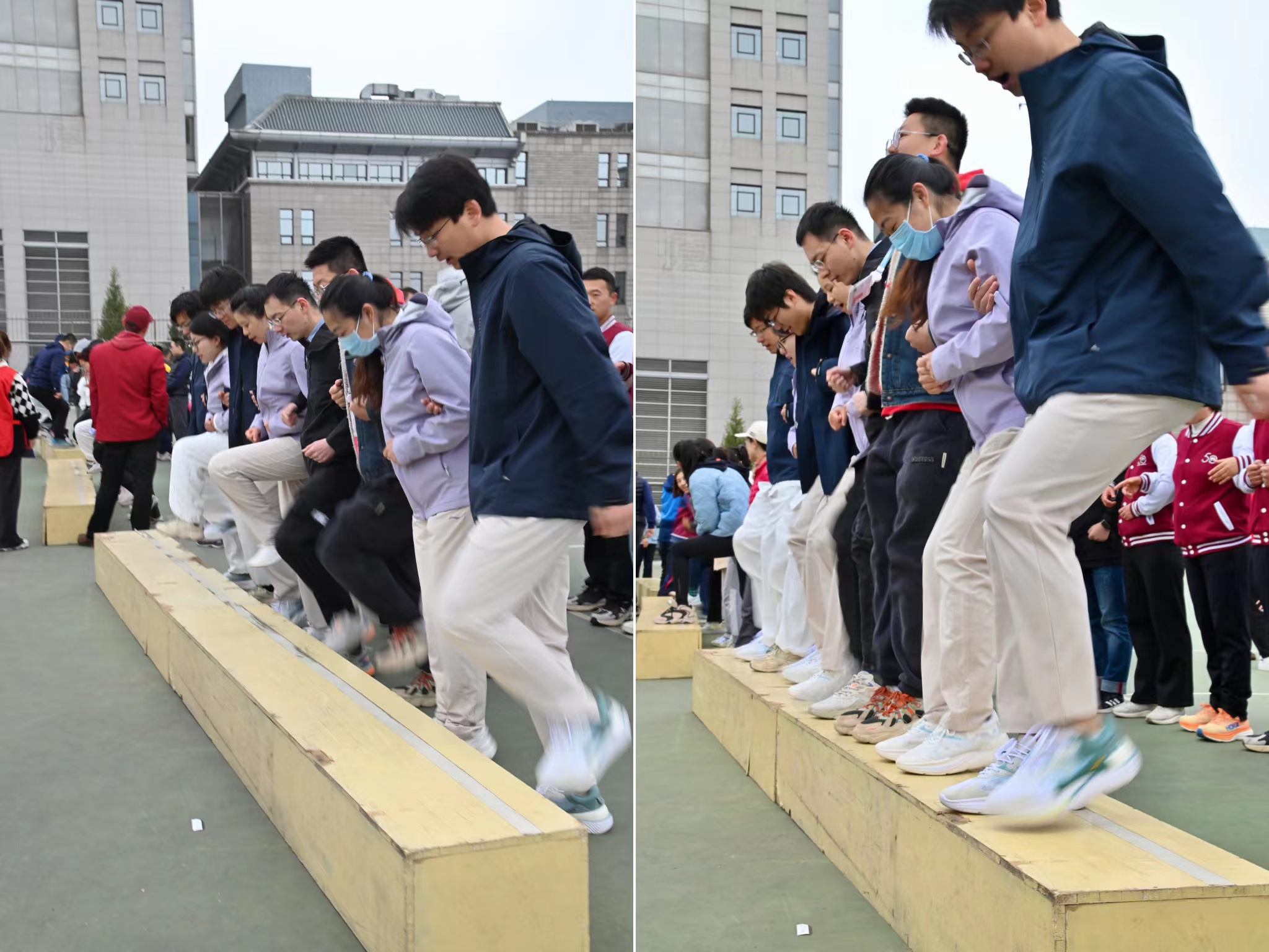 Teacher Ma Qianjun participated in the medicine ball throwingcompetitions.