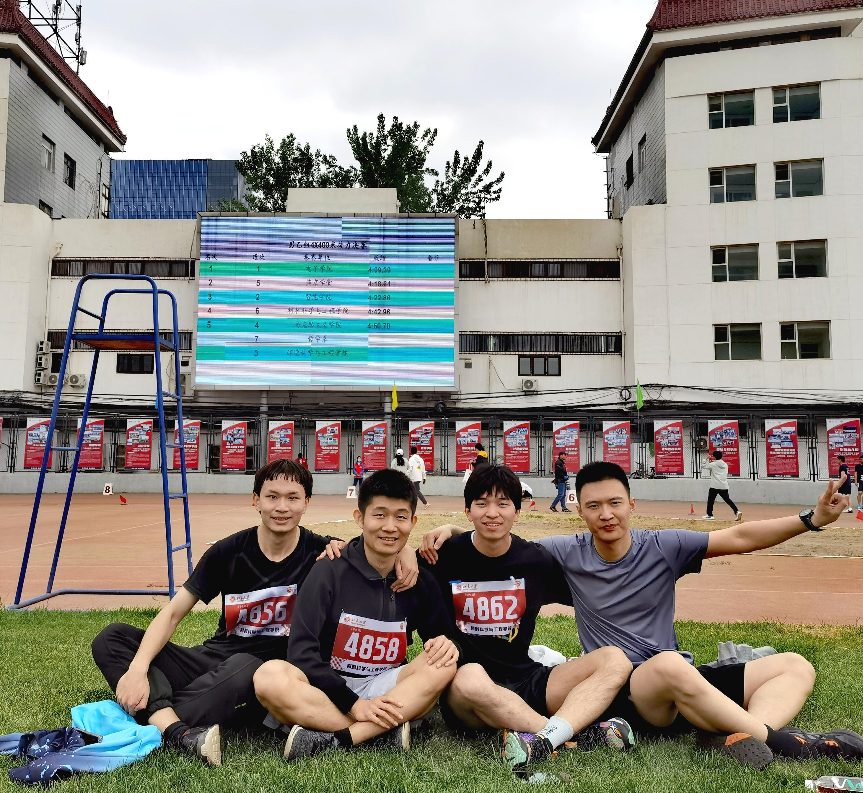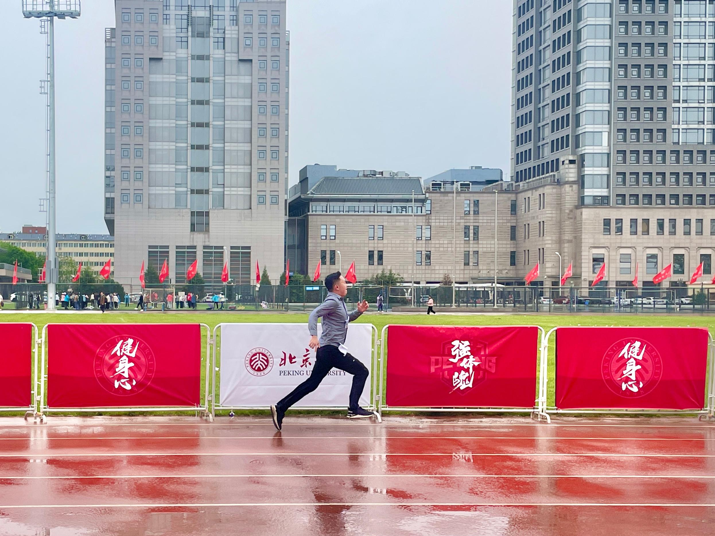 Post-doctor Sun Xun participated in the men’s 100-meter race.