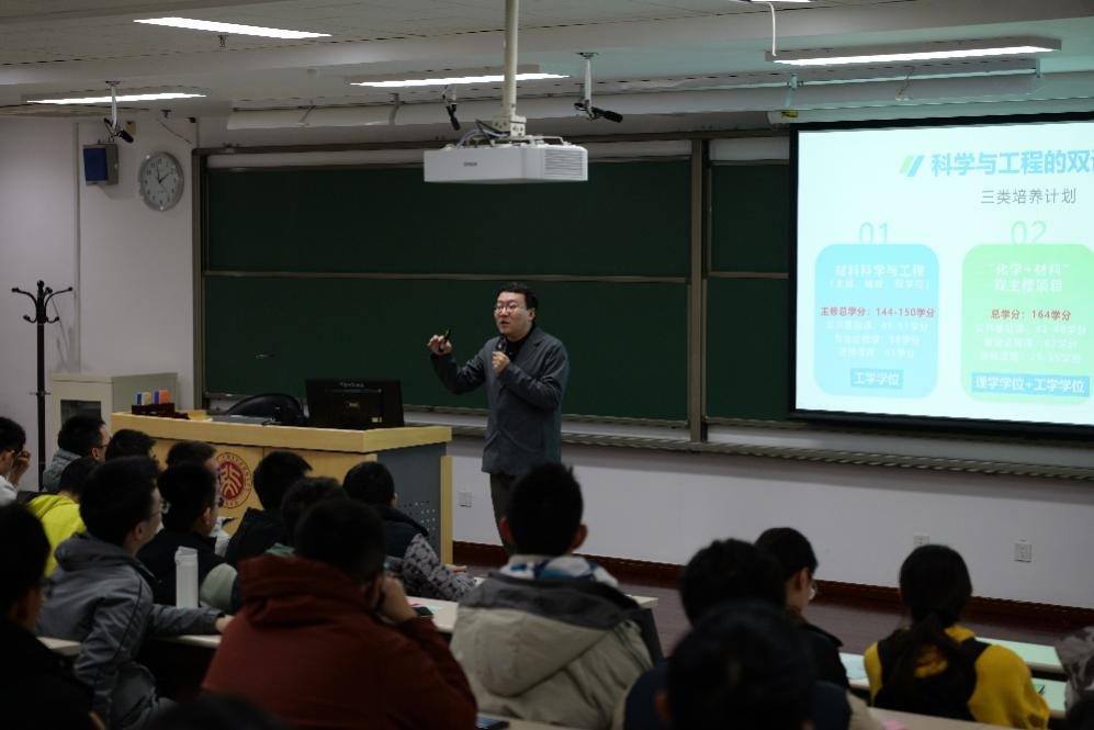 The School of Materials Science and Engineering (MSE) hosted a special event on December 8 at the University Student Innovation and Entrepreneurship Center, located in the Teaching Building No. 2 of Peking University. Over 100 undergraduate students from the College of Engineering, College of Chemistry and Molecular Engineering, and Yuanpei College participated in the event.