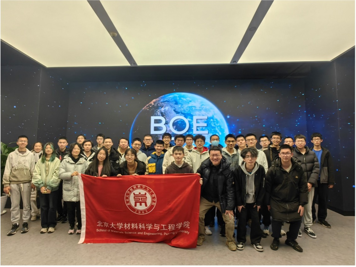 On December 6, 2024, the School of Materials Science and Engineering at Peking University (hereinafter referred to as “the School”) organized a company visit to BOE Technology Group Co., Ltd. (referred to as “BOE”). Led by Researcher Dou Jinhua from the School and Mr. Liu Xuchen from the Office of Academic Affairs, 30 undergraduate students majoring in materials science visited BOE to gain deeper insights into the the company's innovations in display technology and corporate culture, as well as to enhance their awareness and understanding of the development trends in electronic materials.