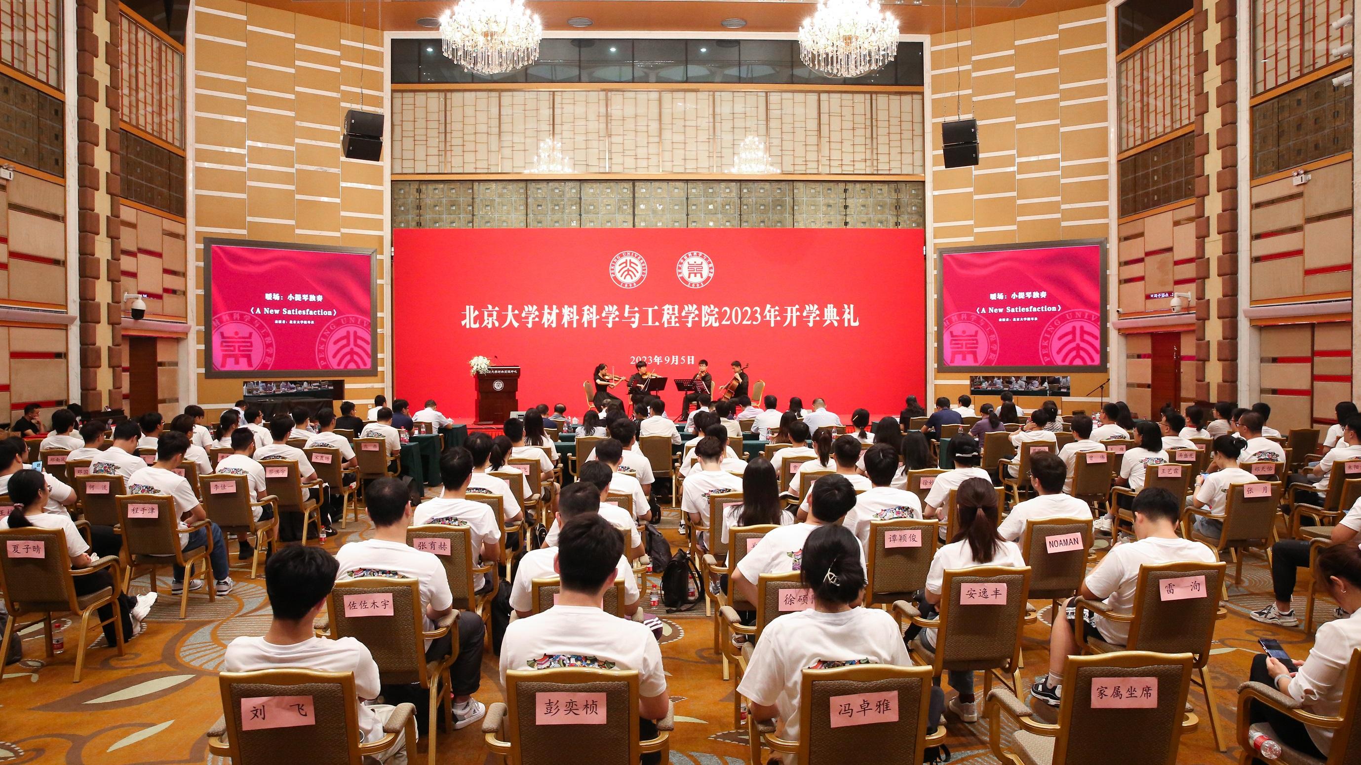 On September 5, 2023, the opening ceremony of the School of Materials Science and Engineering(MSE), Peking University (PKU), took place in the Sunshine Hall of the Yingjie Overseas Exchange Center. Zou Ruqiang, Dean of MSE, Li Ming, Secretary of the CPC MSE Committee, all faculties, new students, and dependents attended. Guo Shaojun, Deputy Secretary of the CPC MSE Committee, host the ceremony.
