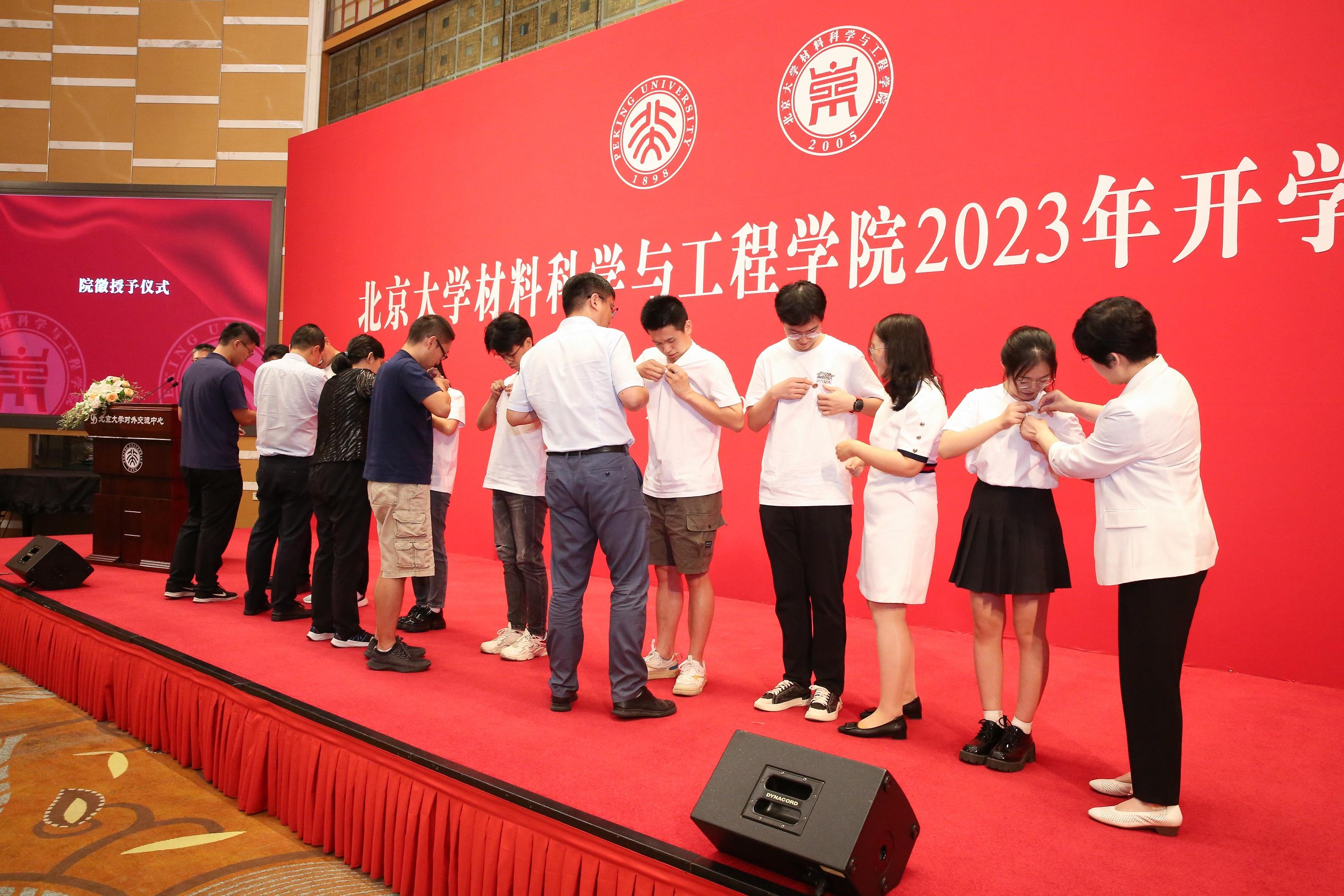 Subsequently, the freshmen of 2023 collectively donned the MSE emblem. By wearing this emblem, the students officially adopted a new identity—“PKU ‘M’ers” (“M”ers: men conducting studies relating to Materials Science), inheriting the spirit of PKU and embracing the responsibility that comes with being a PKUer.