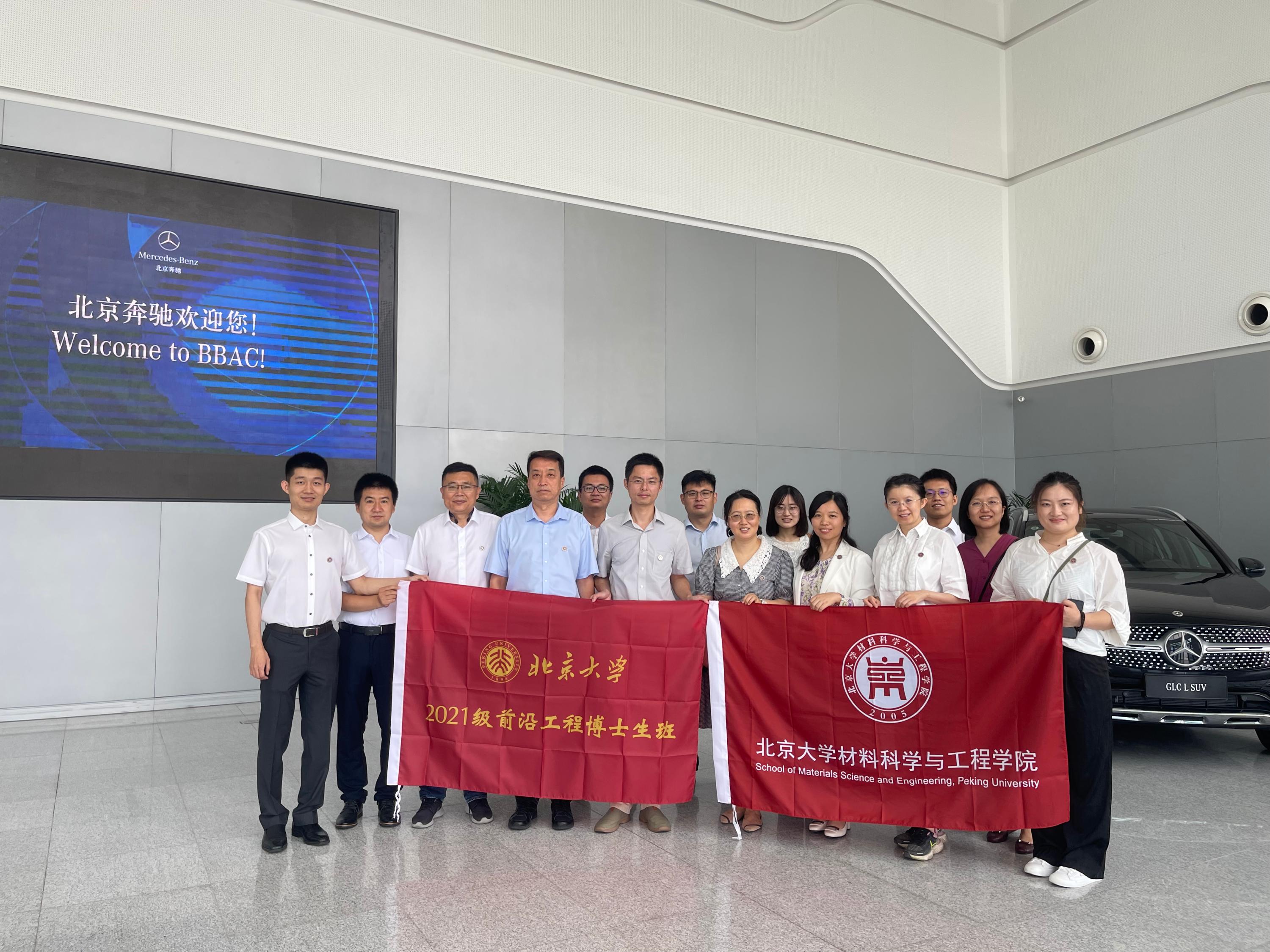 2022年7月26日,北京大学2021级前沿工程博士研究生首次工程实践调研课正式组织实施。本次课程围绕新材料、智能制造和能源安全等国家战略方向,由北京大学材料科学与工程学院(简称“材料学院”)周欢萍副院长、张婧副书记和校研究生院专业学位办何峰主任带队,实地调研了北京奔驰汽车有限公司(简称“北京奔驰”)生产基地和中国石油化工股份有限公司北京化工研究院燕山分院(简称“北京化工研究院燕山分院”)。北京大学2021级前沿工程专业学位博士项目材料与化工、电子信息部分工程博士研究生、材料学院部分学术型博士研究生,以及校研究生院和材料学院相关工作人员等一行14人参加。