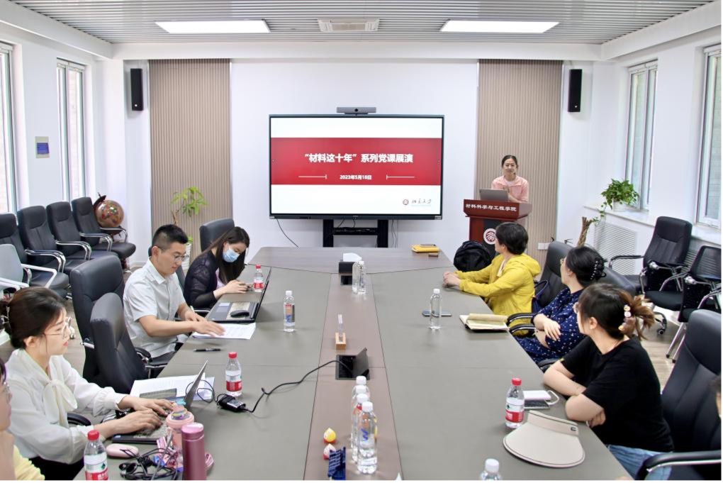 会上,教师代表和学生党员以党课展演的形式,回顾了碳材料、光伏材料、先进液晶材料、锂电材料和压电马达材料等领域和行业的发展历程,介绍材料科研人的奋进故事,并结合国家发展需要与专业实际,讲述新时代材料人的责任与使命。