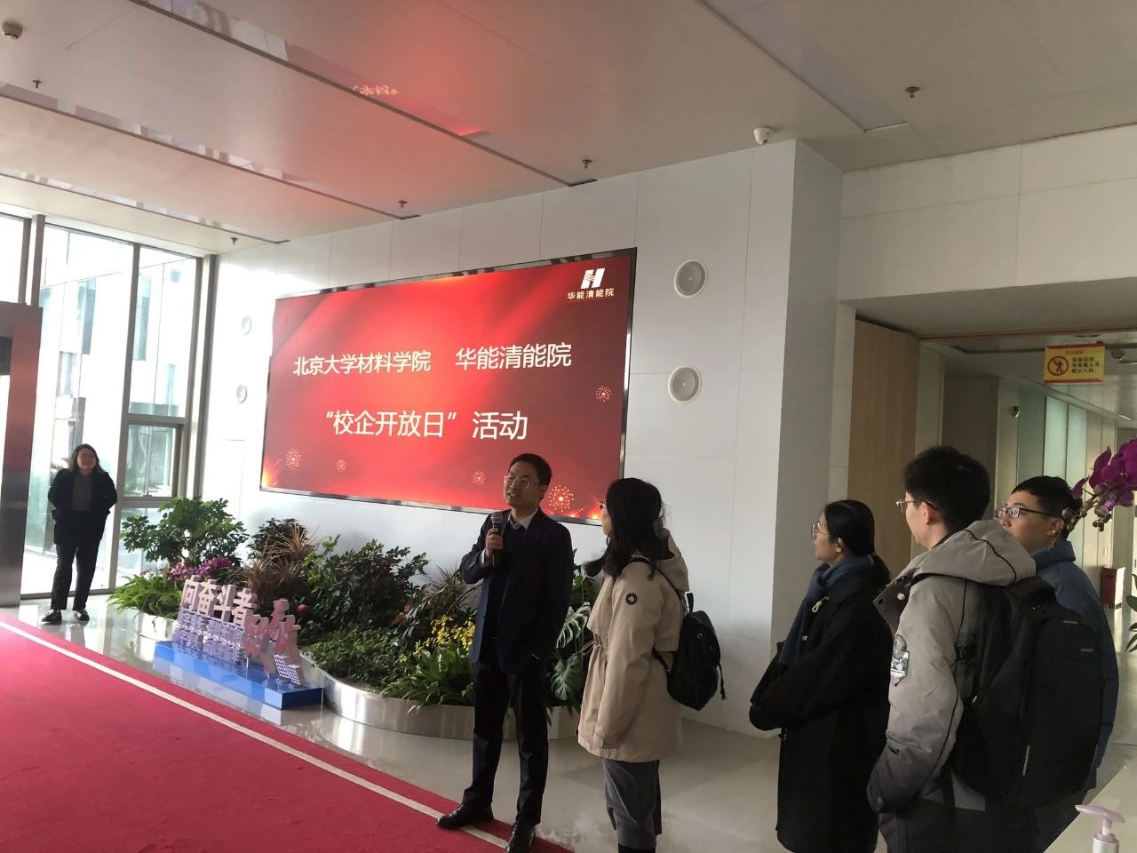 为深入学习贯彻党的二十大精神,鼓励学生在实践调研中认识行业发展现状,加强校企合作,促进学生就业,帮助学生树立正确的择业观和就业观,2023年11月10日,材料科学与工程学院与中国华能集团清洁能源技术研究院有限公司(简称“华能清能院”)联合举办“校企开放日”活动,学院师生深入华能清能院研发一线参观交流。华能清能院院长助理兼人资部负责人李晨,北京大学材料科学与工程学院党委副书记张婧、团总支书记袁苗苗出席此次活动。