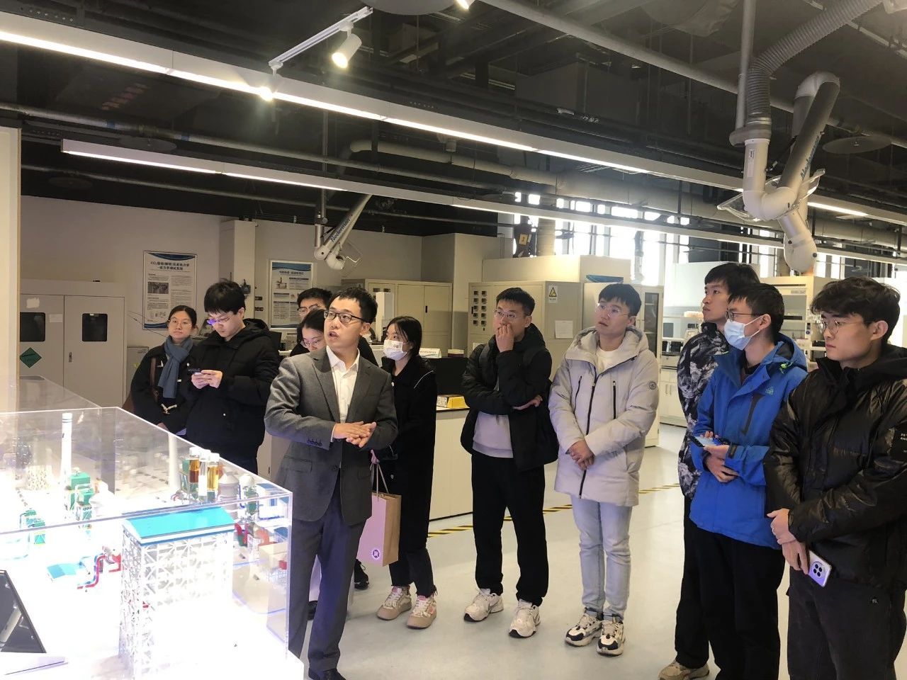 下午,材料学院师生一行抵达华能清能院。李晨对材料学院师生的到来表示热烈欢迎,并在大厅通过短片向大家介绍了清能院的基本情况。随后,温室气体减排部业务经理、北京大学校友孙北奇带领师生先后参观了温室气体减排技术实验室和电池储能技术实验室。温室气体减排技术实验室围绕碳达峰、碳中和愿景,以"减污降碳"为主线,致力于开发具有自主知识产权的二氧化碳捕集利用与封存(CCUS)、多污染物一体化脱除(COAP)等技术,推动工程示范、成果转化和技术输出,为应对气候变化、保障能源安全、实现双碳目标提供可行的技术途径和性能先进的关键技术及装备,践行碳捕快的零排使命。电池储能技术实验室聚焦电池系统集成领域,开发出了具有国际先进、国内领先水平的分散式电站储能系统集成技术,形成了新一代储能技术综合解决方案,建成全球首座百兆瓦级分散式储能电站,在国内储能行业形成独具特色的技术品牌。来访师生认真学习参观,积极互动交流,结合自身所学,感悟企业技术研发的特点。