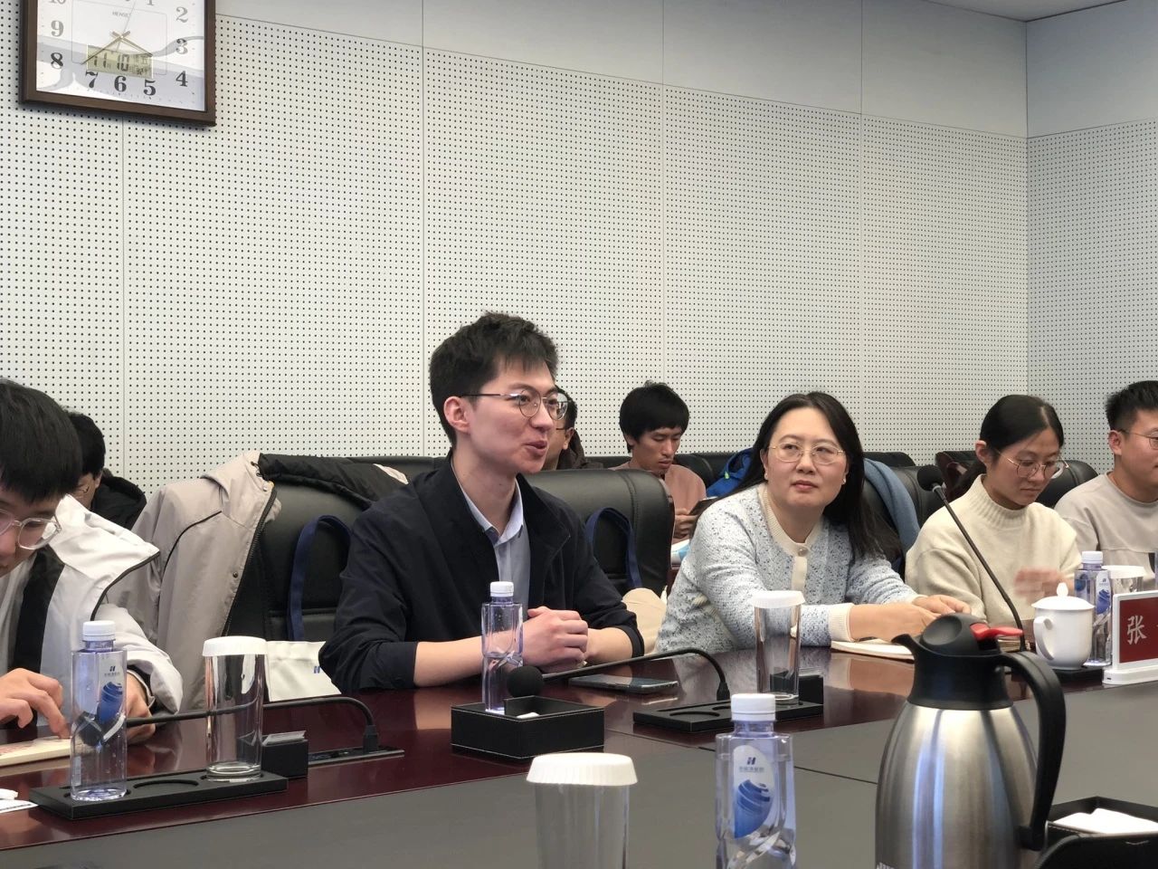 最后,材料学院来访师生和清能院相关工作人员一同进行座谈交流。李晨首先详细介绍了清能院的发展历史、基本情况、发展战略、工作环境,并就职业规划与同学们进行了交流。中国华能集团成立于1985年,是国内最早的独立发电集团,是全球领先的发电集团之一。清能院于2010年建院,是华能集团公司直属的清洁能源技术研发机构,重点研发方向涵盖近零排放燃煤发电、煤气化及煤基清洁转化、CO2捕集利用和封存、大型循环流化床锅炉、低质煤高效利用、水电、风电、太阳能发电、海洋能发电、生物质能发电、发电新材料、能源系统设计优化、页岩气和煤层气开发等技术领域。李晨表示,华能清能院拥有实力强劲的人才队伍和提供成长支持的职业规划,欢迎同学们的选择和加入。