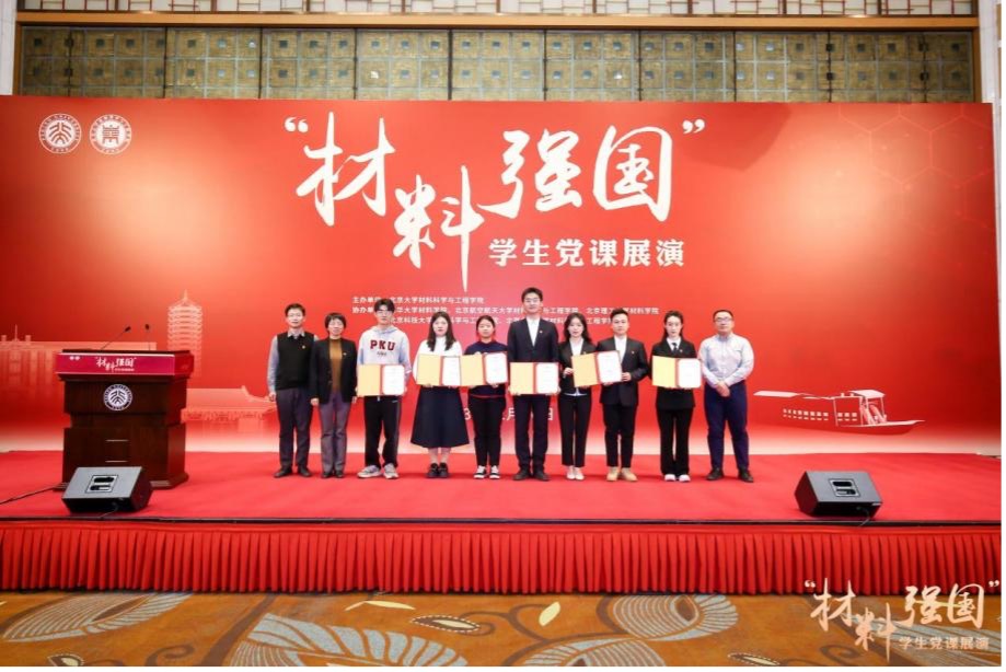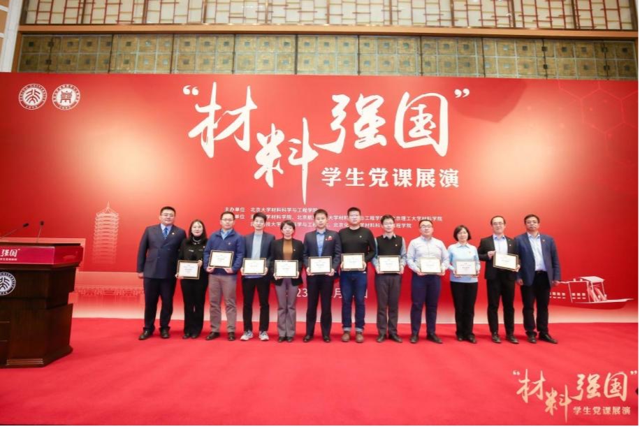 由北京大学材料科学与工程学院联合A类材料学科在京院校举办的“材料强国”学生党课展演活动于12月10日在北京大学英杰交流中心阳光厅成功举行。活动汇聚了来自北京大学、清华大学、北京航空航天大学、北京理工大学、北京科技大学、北京化工大学六所高校材料学科的师生代表,共同讲述材料人科技报国的故事,展示中国材料科学的发展成果,共话材料行业的未来和当代材料人的使命。