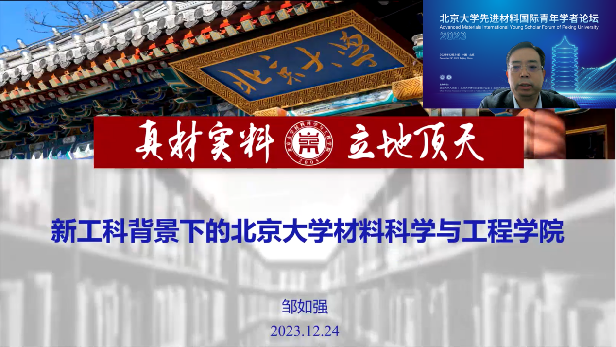 12月24日,北京大学第二届先进材料国际青年学者论坛成功举办。来自斯坦福大学、麻省理工学院、加州大学伯克利分校、加州理工学院等海外高校的全球优秀青年学者们相聚云端,共同探讨先进材料领域的最新研究动态。
