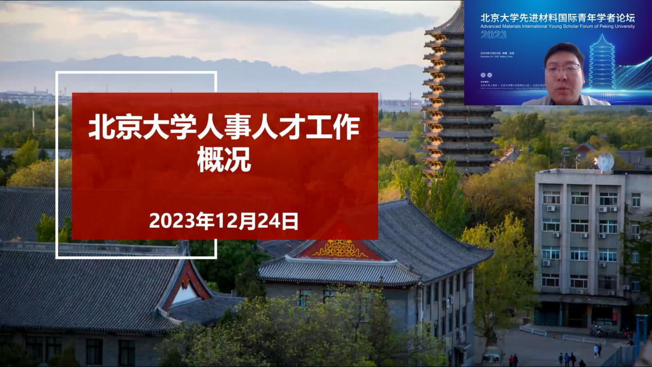 张辉首先指出北京大学一直高度重视师资人才队伍建设,持续推进完善人事人才体系,汇聚教育教学、学术研究和社会服务全面发展的优秀人才。张辉全面介绍了北京大学历史沿革、人员规模和结构变化,着重介绍了年轻教师关心的职称晋升、薪酬待遇、科研支撑等内容。他强调,学校将继续落实“人才强校”战略方针,人事部全体同仁将全力做好服务保障工作,期待青年才俊们加入北京大学。