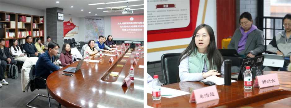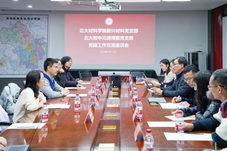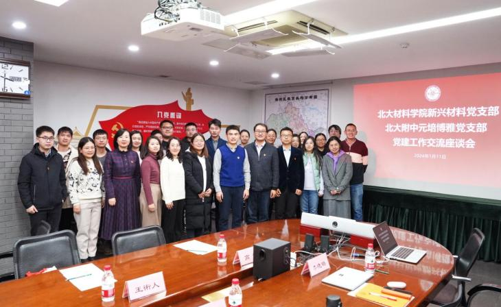 1月11日,北京大学材料科学与工程学院新兴材料党支部党员代表一行莅临北京大学附属中学,与北大附中元培博雅党支部开展党建工作交流活动。材料学院党委人事办公室主任许人杰、新兴材料党支部书记莫凡洋、支部组织委员柏华荣、支部宣传委员王術人与博士后党员代表出席。北大附中党委委员、副校长景志国,元培博雅党支部书记刘亮与党员教师代表等参加座谈会。会议由景志国主持。