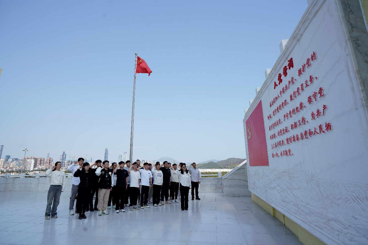 (师生党员在皇岗口岸旗楼重温入党誓词)