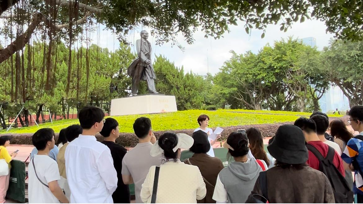 3月23日,实践团走进莲花山公园。在公园顶峰的邓小平雕像广场的花岗岩石墙北面,镌刻着邓小平同志1984年视察深圳时“深圳的发展和经验证明,我们建立经济特区的政策是正确的”的题词,不断向外传递着他对深圳的期待与信心。学院师生瞻仰邓小平雕像,进一步感悟了“改革开放的步子要大一点”的思想,也深刻感受到深圳在改革开放中大步向上、大步向前的奋进姿态。