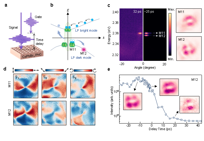 此外,研究团队通过利用BIC激子极化激元之间的非线性相互作用,并借助延时的双束激光进行精确控制,在构建的二维有限结构中成功实现了多个离散BIC激子极化激元模式之间的快速切换。这种切换的时间尺度小于20皮秒,并且能够保持其发射的拓扑性质不变,为BIC激子极化激元器件发射的全光学调控提供了新思路。