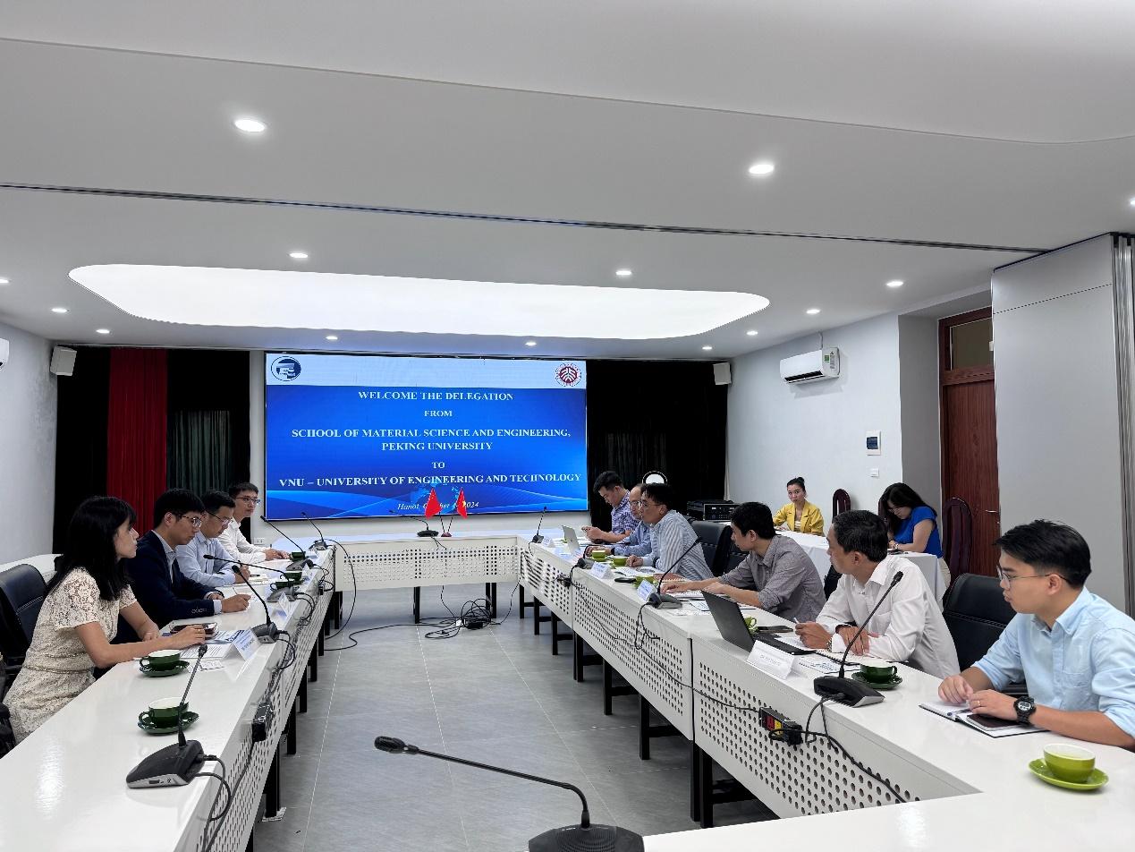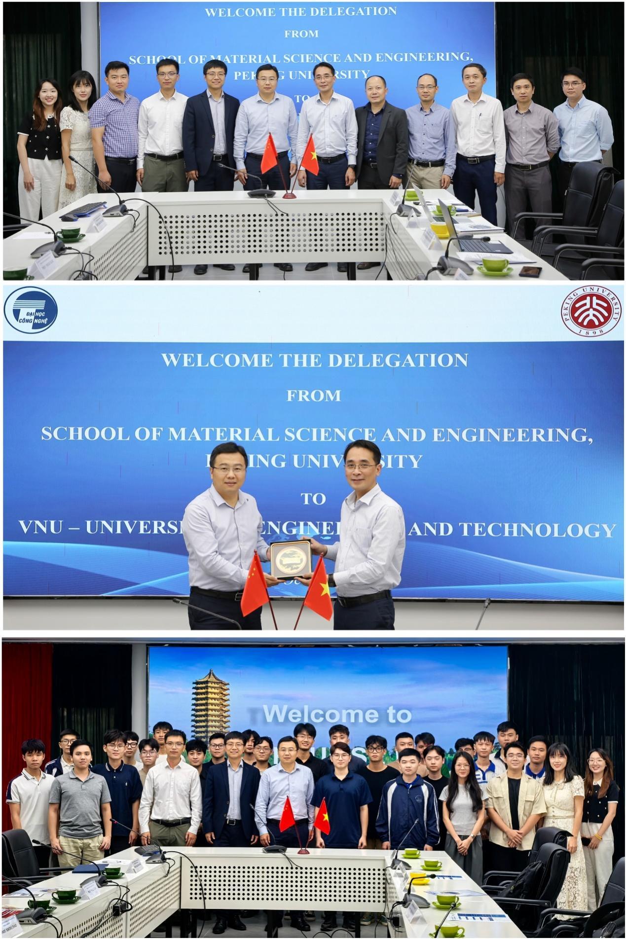 在中越两国山水相依、文化交融的悠久历史背景下,科研和教育合作成为连接两国友谊与未来的桥梁。为深化北京大学材料科学与工程学院国际学术文化交流,进一步推动学院与世界知名大学和机构的合作,2024年10月12-14日,由北京大学材料科学与工程学院院长邹如强、深圳研究生院新材料学院副院长肖荫果带队,北京大学材料科学与工程学院国际合作办公室主任赵晓续、深圳研究生院新材料学院教师陈召龙、丁媛媛共同组成的“南北联动”代表团,赴越南河内三所高校开展交流与参访活动。