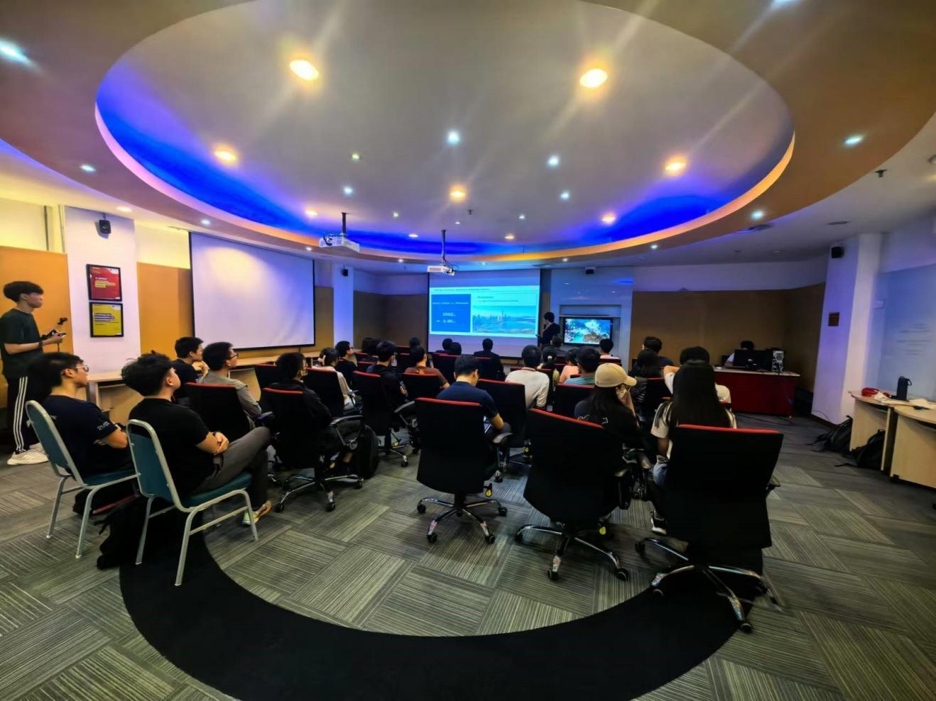 随后,调研团在会议厅展开学生交流活动,该活动吸引了大量学生的积极响应与参与,现场气氛热烈而活跃。