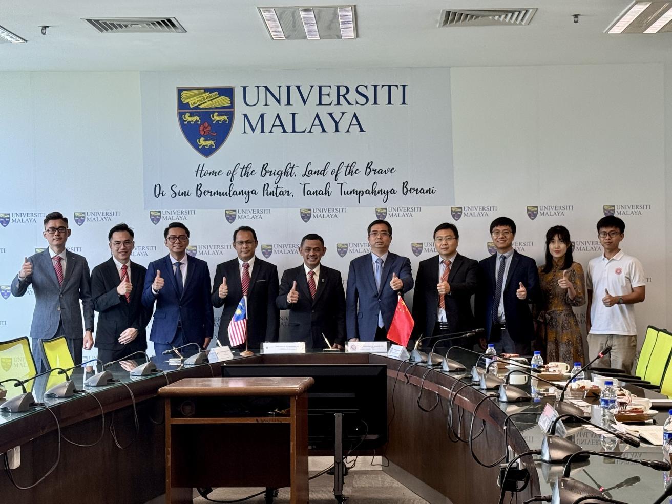 与马来亚大学代表交流合影