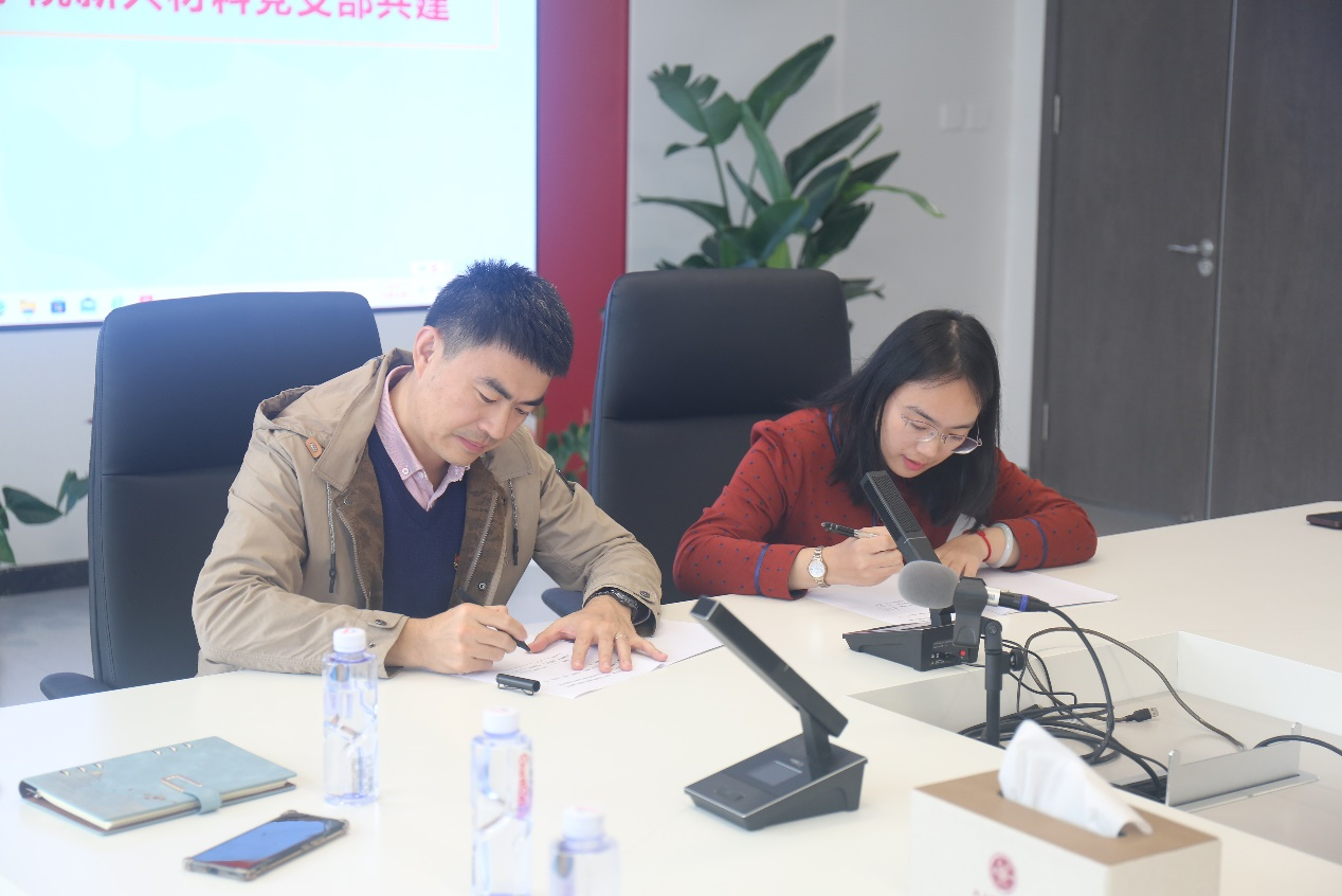 随后,莫凡洋与北大附中石景山学校第二党支部书记杨超杰共同签署共建协议,双方将以“党建引领、共建共享、多元服务、探索创新”为共建原则,以多种创新、联合、共享的模式促进教育科技人才培养,完善实践育人机制,提升党建工作水平,更好地发挥党组织的战斗堡垒作用和党员的先锋模范作用。