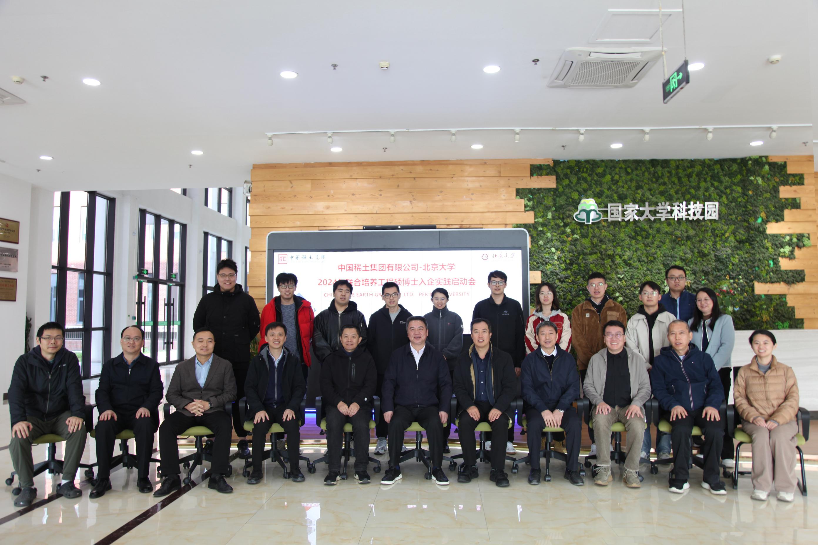 为进一步发挥校企资源优势,促进产学研深度融合,2024年10月29日,北京大学、中国稀土集团有限公司在中稀(北京)稀土研究院召开2024年联合培养工程硕博士入企实践启动会。出席本次会议的有中国稀土集团党委副书记、董事、工会主席杨国安,北京大学研究生院副院长王天兵,研究生院专业学位办主任刘广送,中国稀土集团党群工作部负责人李程亮,中稀(北京)稀土研究院院长程福祥,技术总监吴声,北京大学材料科学与工程学院院长助理雷霆,教务办公室主任吕爽,导师代表以及7名联合培养工程硕博士研究生。会议由中国稀土集团团委书记、人力资源部(党委组织部、人民武装部)副总经理(主持工作)宁斌主持。