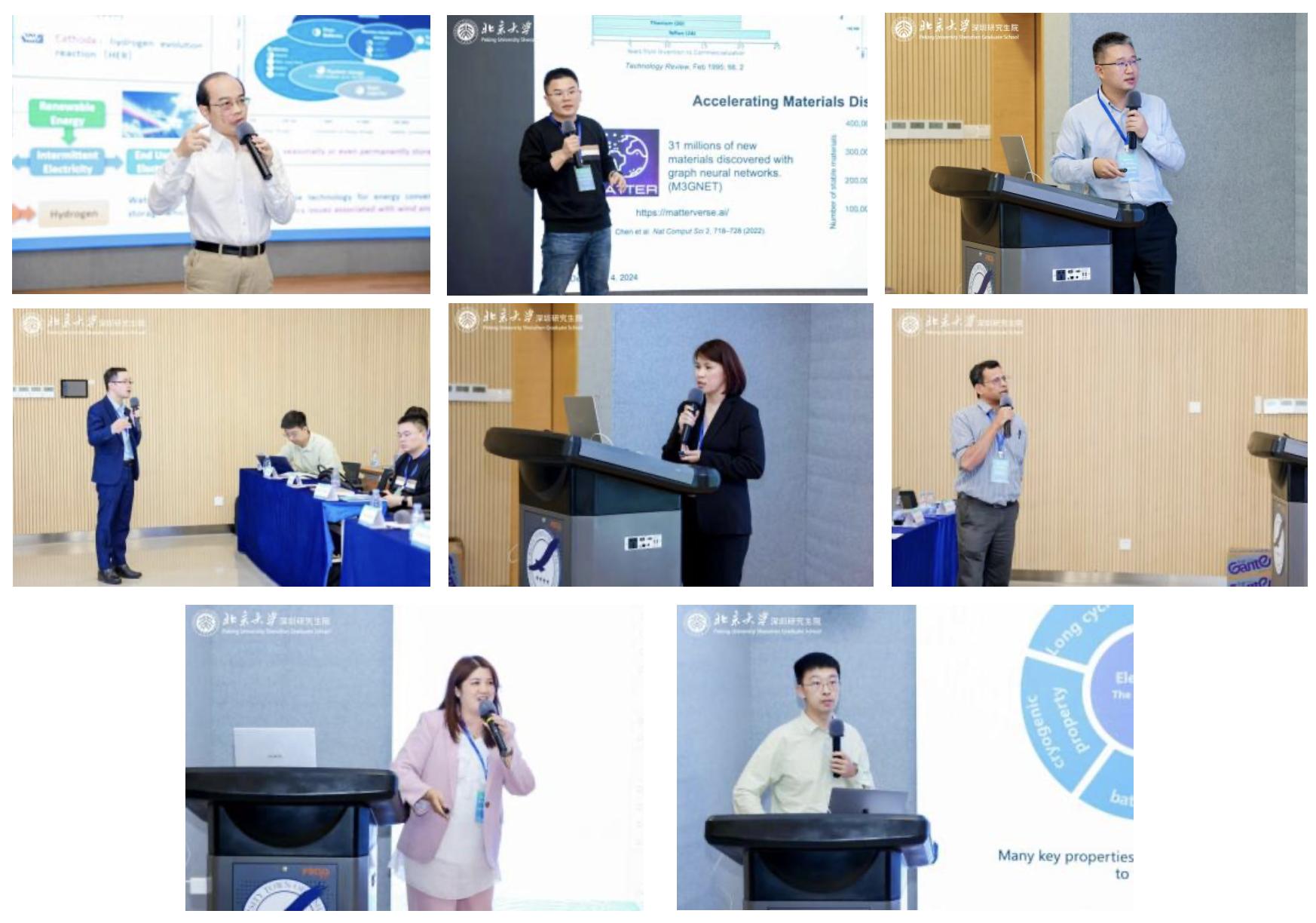 开幕式大会报告环节,北京大学党委常委、副校长、深圳研究生院院长张锦院士以“Can AI Change the Research Paradigm in Materials Science”为题,深入探讨了人工智能在材料科学研究中的潜在变革作用。他从“AI for Material Characterization”、“AI for Controllable Preparation”和“AI: From Lab to Industry”三方面探讨了AI技术如何革新材料研究范式,助力材料数据库的标准化、材料基础研究的全局性以及材料从实验室到产业化的跨越,展望了AI为材料科学研究带来的全新未来。随后,新加坡南洋理工大学Yanli Zhao教授、马来西亚马来亚大学Wey Yang Teoh副教授、越南河内国家大学Le Thanh Son教授和香港城市大学Yang Ren教授分别作主题报告,他们介绍了AI在催化剂设计、智能传感器开发、诊断治疗集成系统研发以及基于同步辐射大科学装置的材料研发等方面的应用,并强调了AI技术对材料科学发展的重要意义。