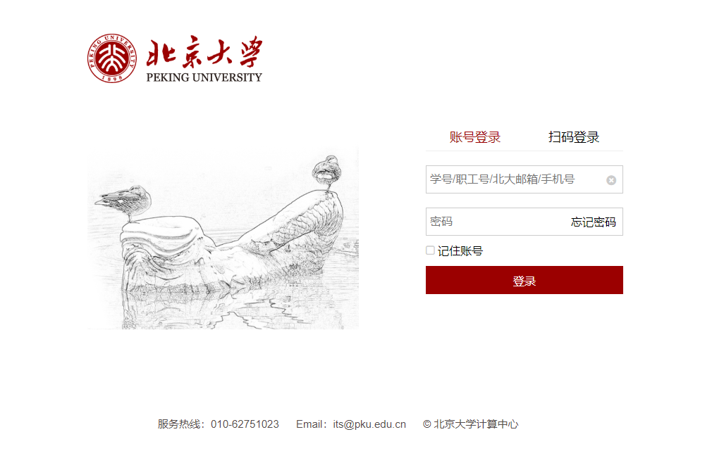进入如下网页,使用北大账号登陆,用户名是本人学号;