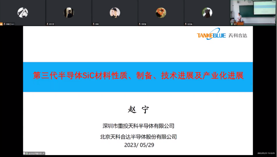 5月29日下午,“材友堂”院友讲座第二讲在线上举行,深圳市重投天科半导体有限公司生产总监、材料科学与工程学院前沿工程博士生赵宁带来“第三代半导体SiC材料性质、制备、技术进展及产业化进展”主题报告,学院师生约50人参加活动,活动由学院刘磊研究员主持。