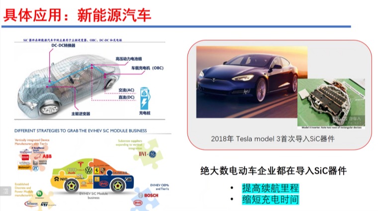 赵宁以应用第三代半导体的小米GaN充电器、莫桑钻和特斯拉Model 3三种产品,引出本次讲座的主题。他主要从半导体材料概述、第三代半导体SiC衬底产业及应用进展、制备技术进展、关键技术及机遇与挑战等五个方面进行分享。