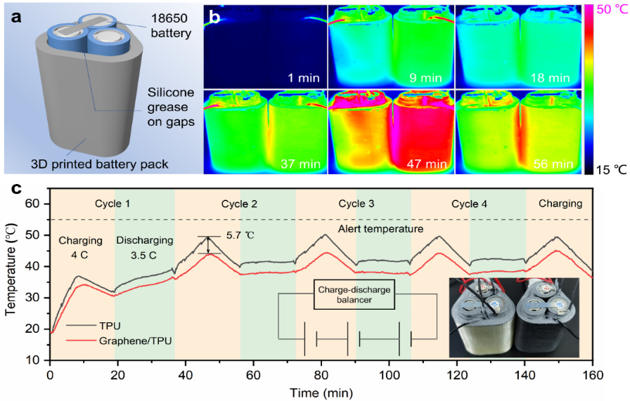 FDM3D打印石墨烯填充聚氨酯复合材料锂电池导热壳体基散热效果